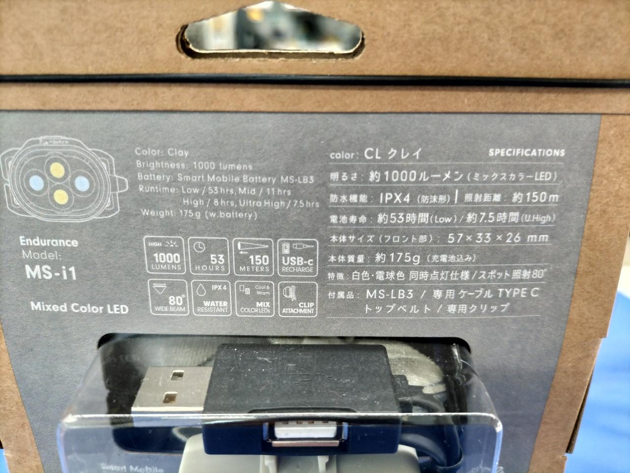 1000ルーメンのヘッドライト(MS-i1)と別売のバッテリー(MS-LB3)のセット品です |