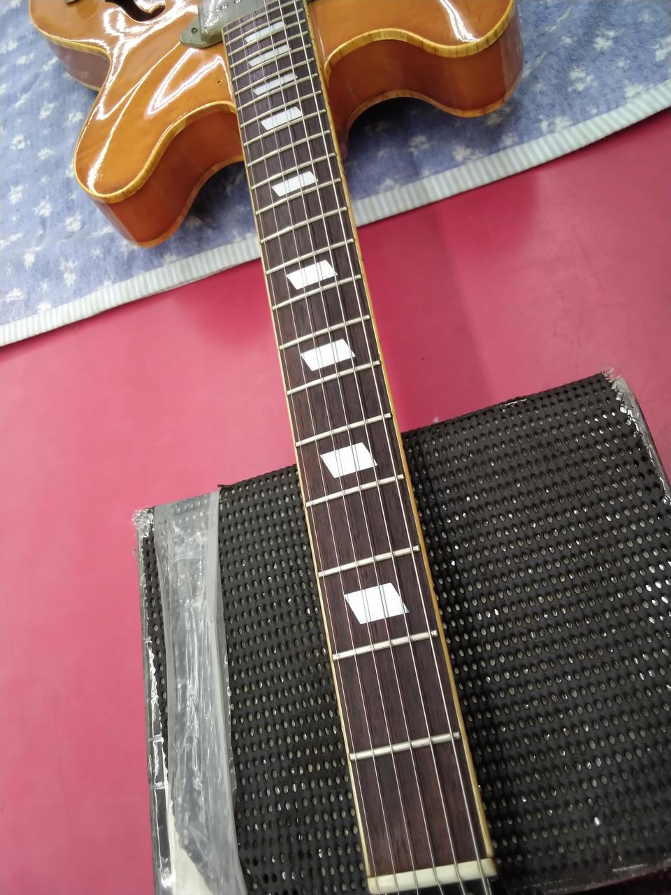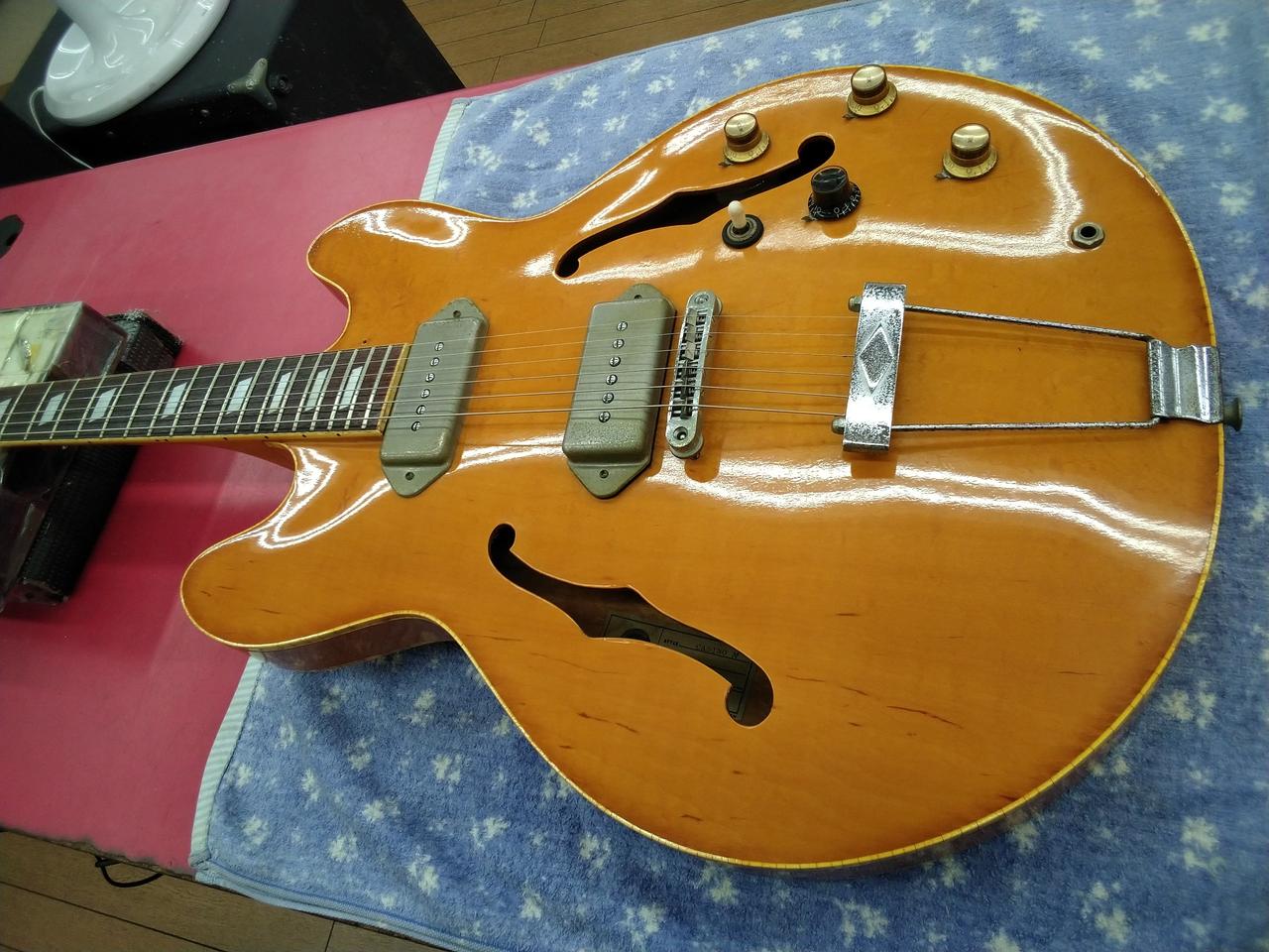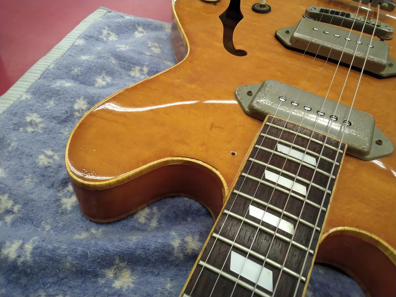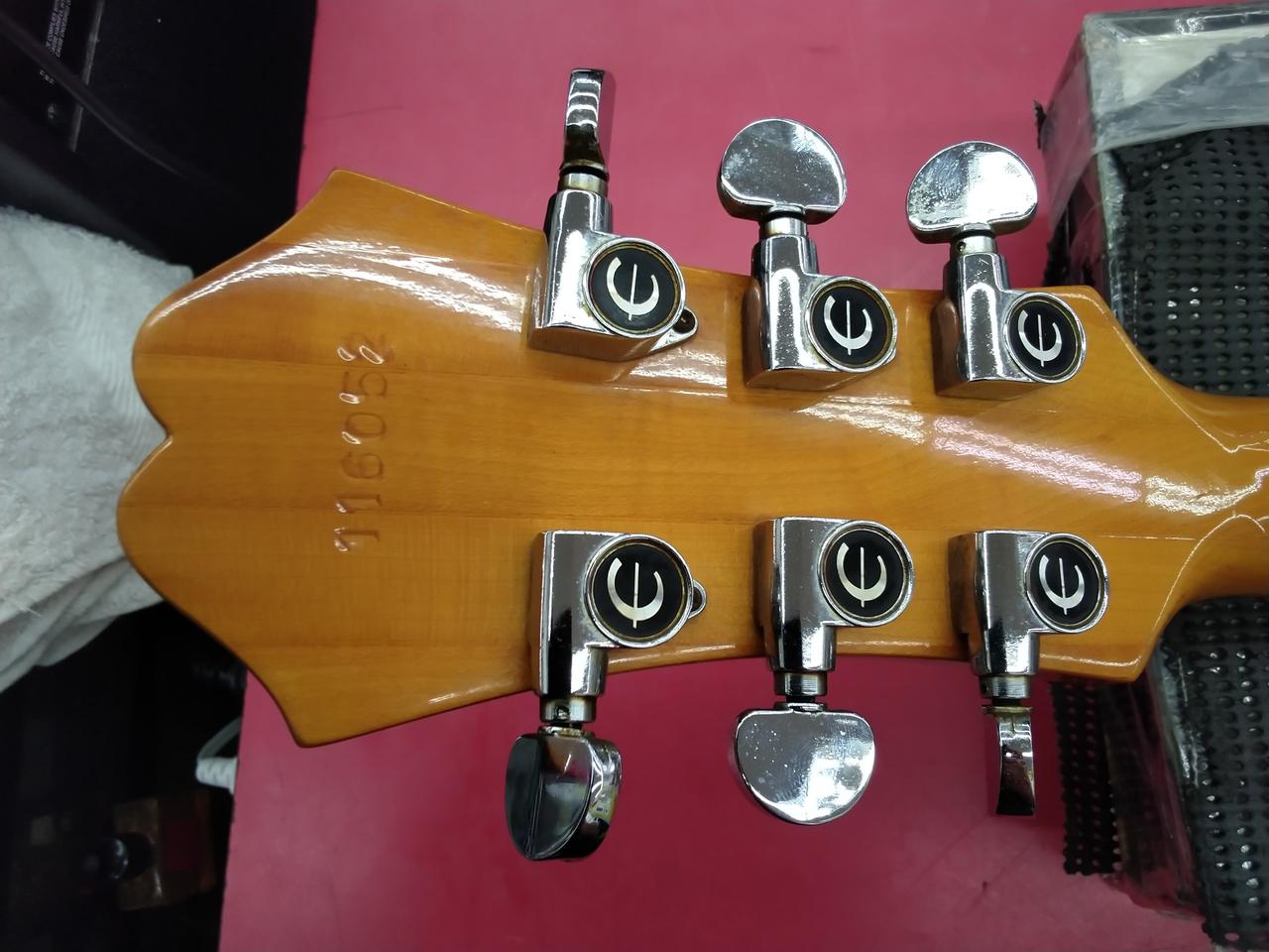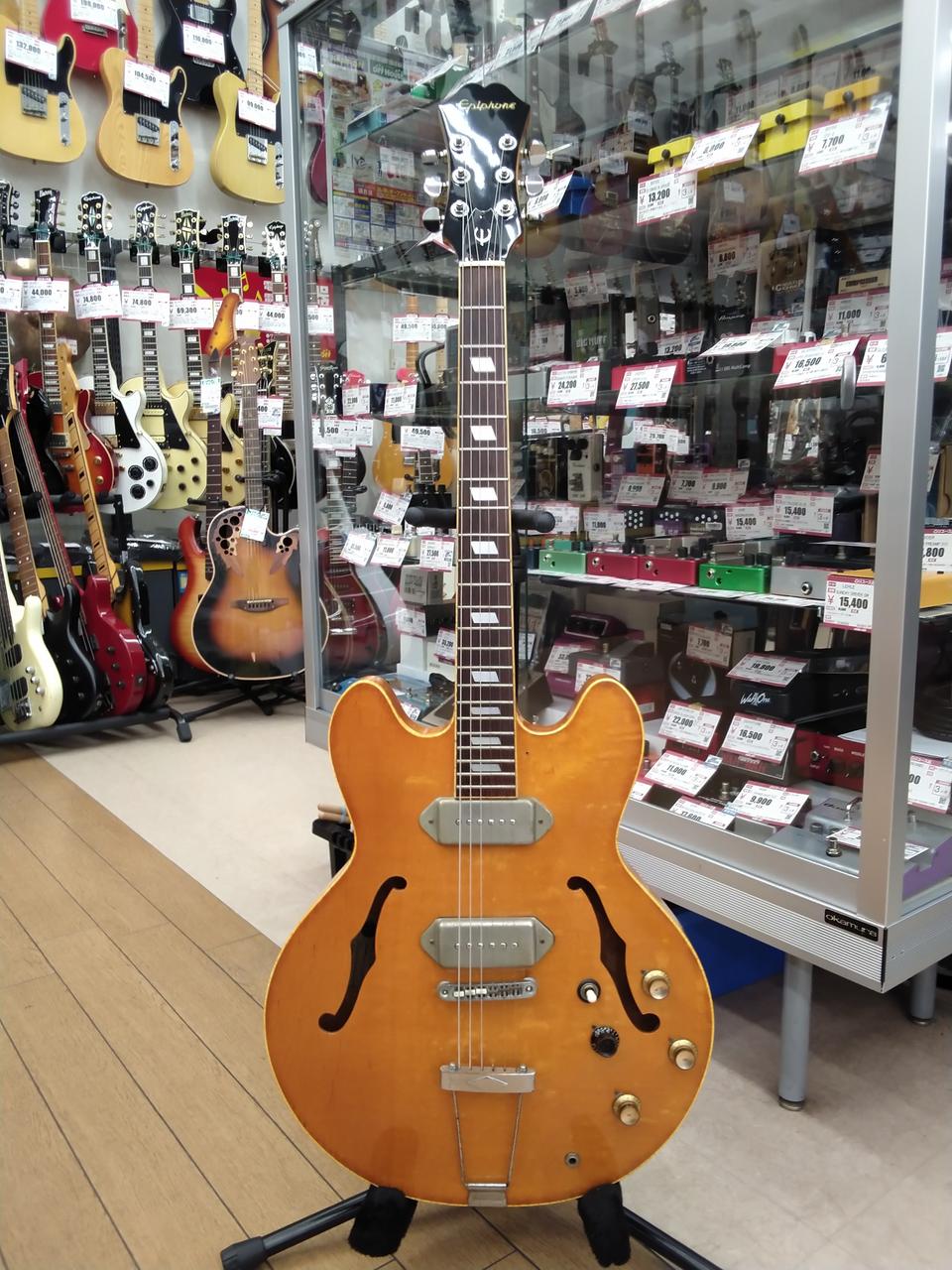 ブルーラベル & 打込みシリアル の、MADE IN JAPAN 期の EPIPHONE CASINOです。 メイプルネック期 特有の音程感のある出音です。 もはや、歴史的資料な一本ですね。 |