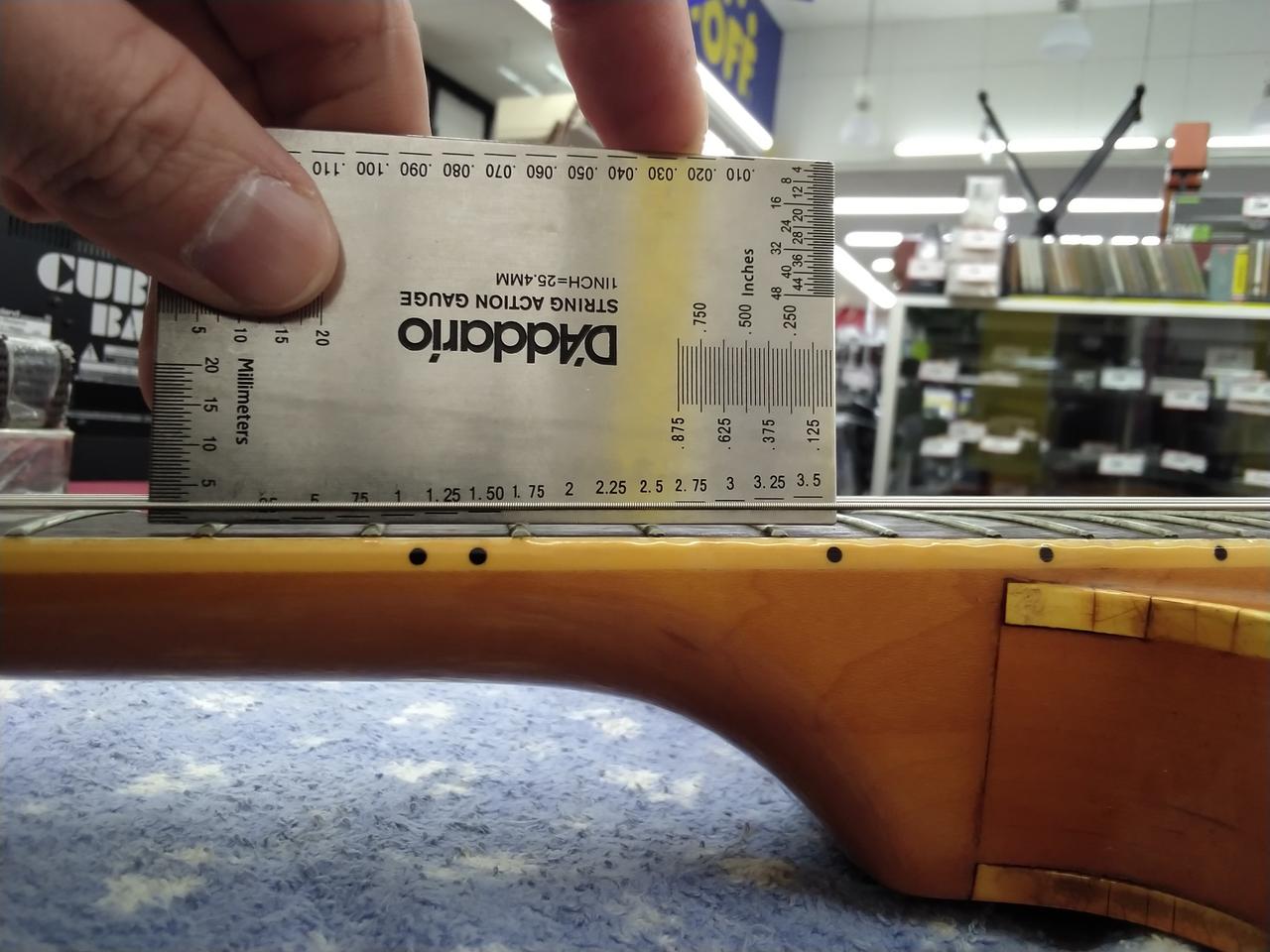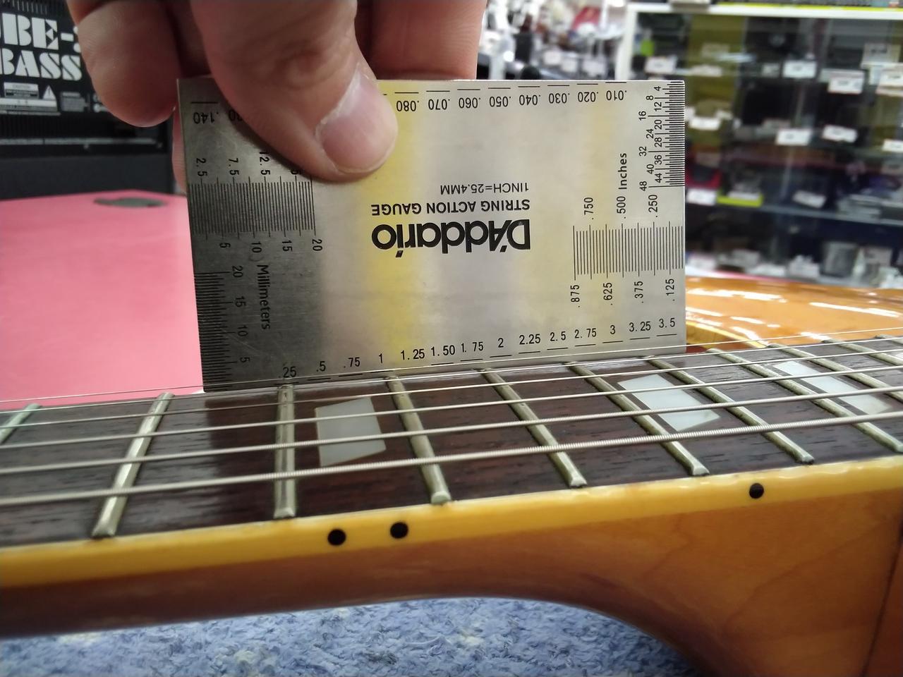※商品画像は、09-42の弦にて、レギュラーチューニングの状態で撮影しています。トラスロッドもレギュラーチューニングの状態を基準にしてあります。 全てのポジションで演奏確認を行い、音詰まりがないこと、 チョーキングをしても音が消えないことを基準にセッティングしています。弦高の数値は、気候・ネックコンディション・チューニング・弦のゲージ、またトレモロユニットの場合はブリッジのフローティング具合等の要因で上下しますので、あくまでの参考値となります。また塗装・木工・研磨切削等、不可逆的なカスタムで品物へ手を加えられる場合は、保証対象外となる場合がございます。 |
