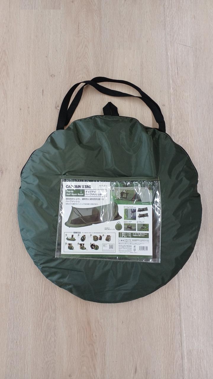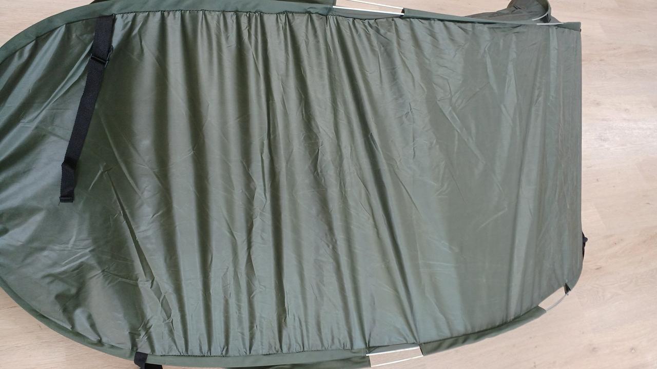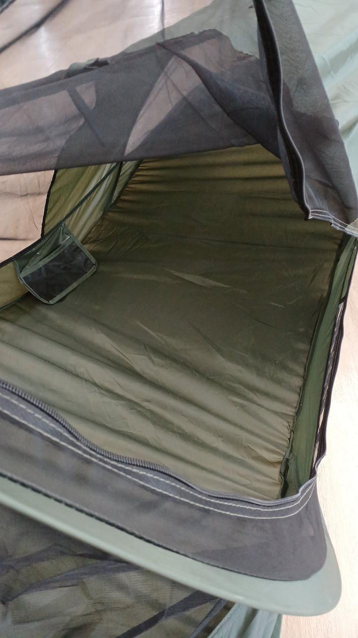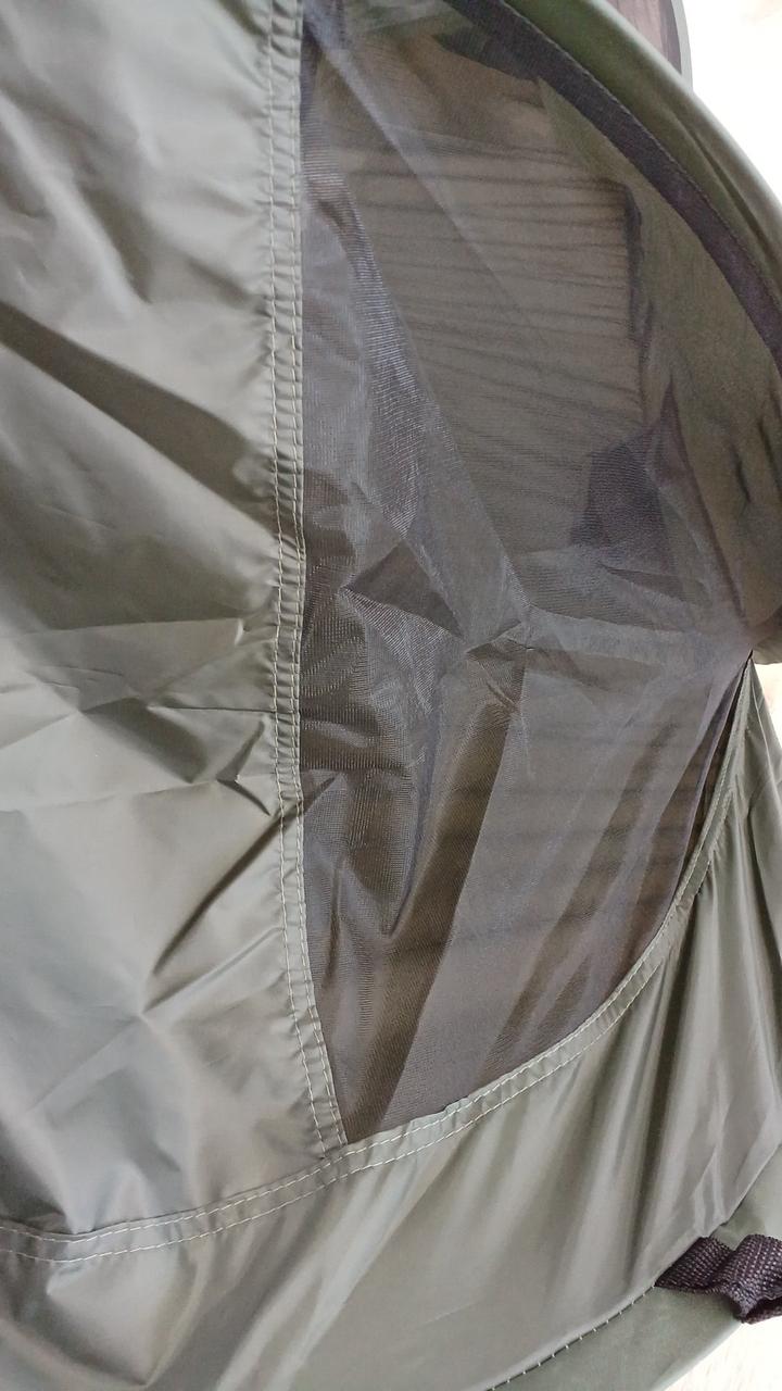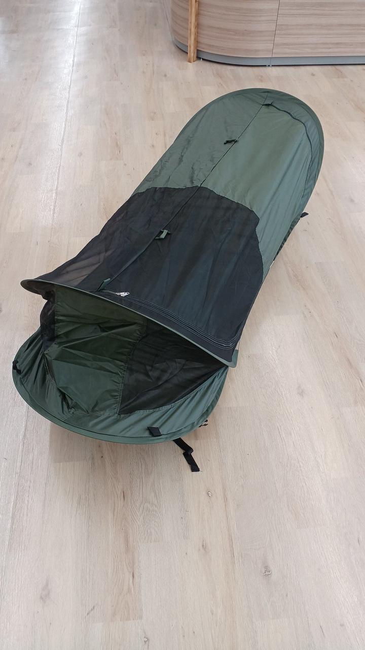 コットの上ベルトで固定して使うカヤです。暑い時期のキャンプにおすすめ! |