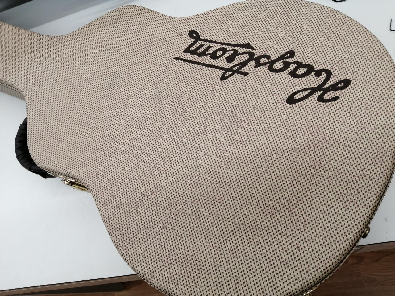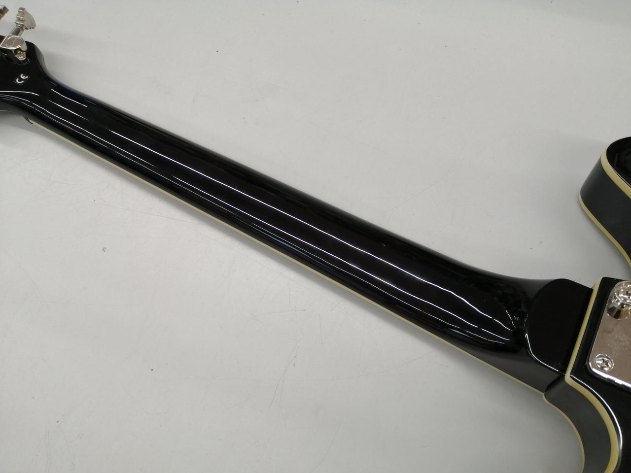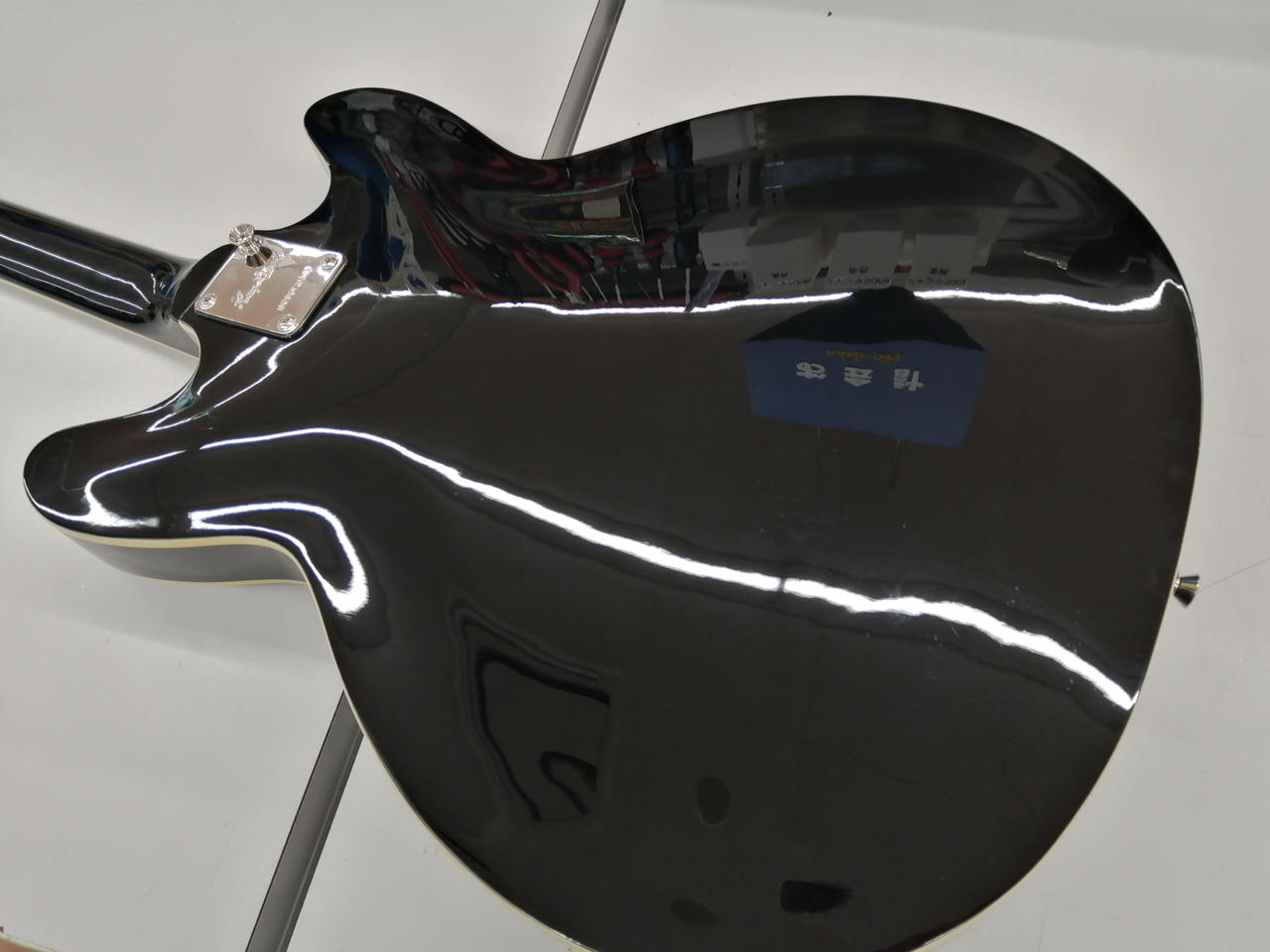 メイプルラミネートボディはセンターブロック有りのセミアコ構造 |