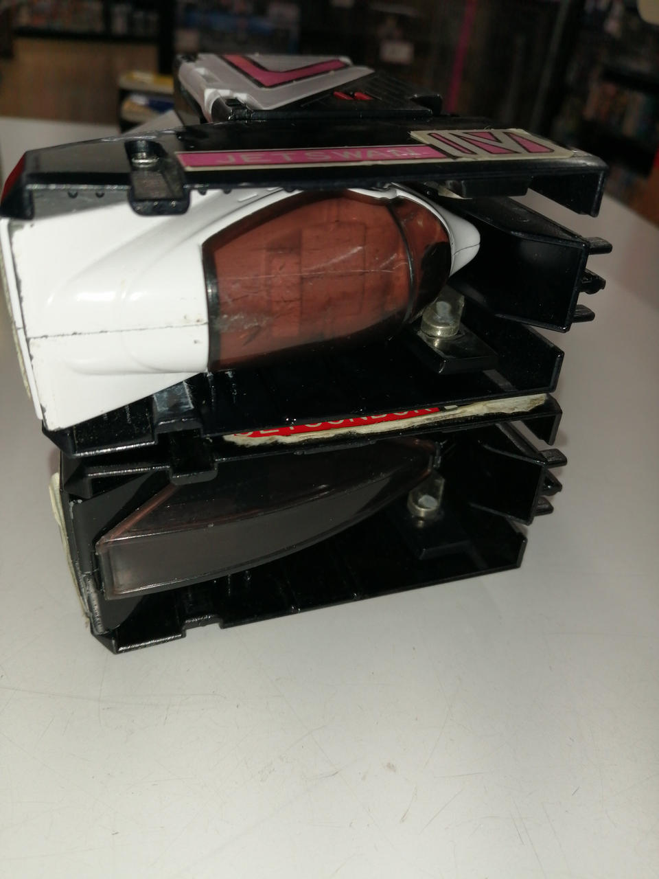 画像の通り、パーツ欠品がみられます。シールの剥がれや全体的に汚れ・キズ等の傷みが多い商品です。現状でのお渡しとなります。 |