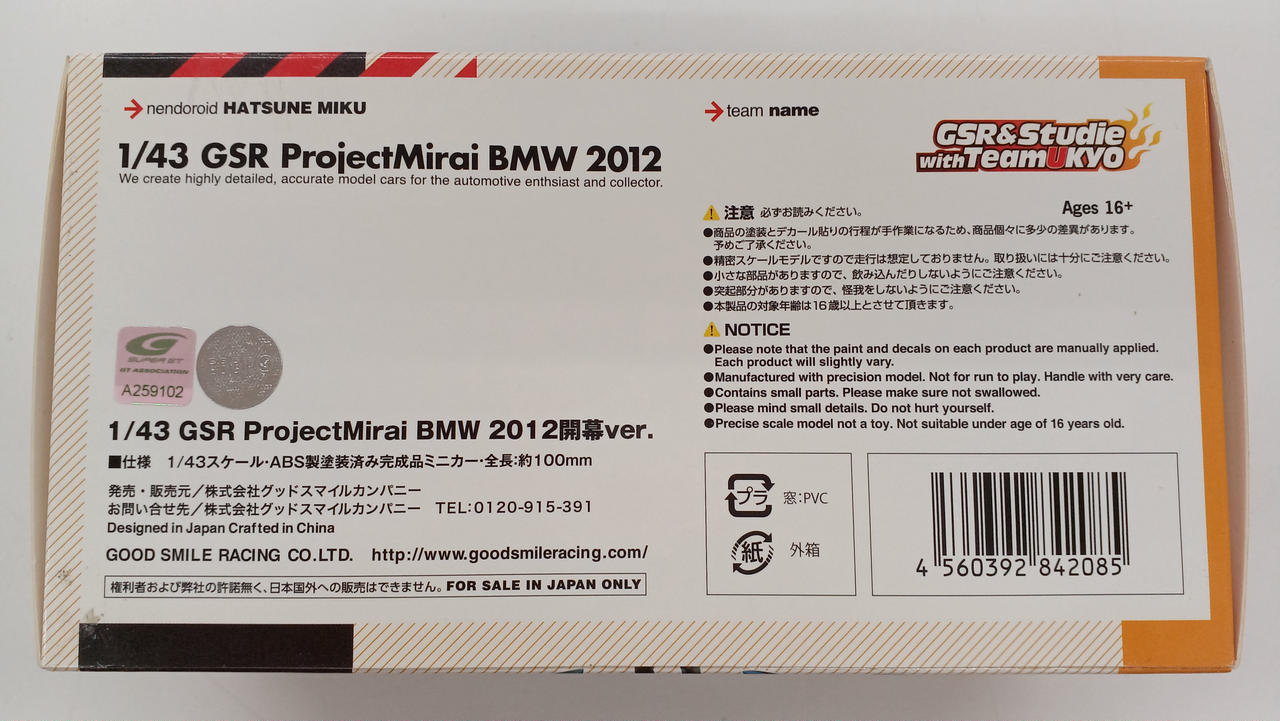 型番:GSR PROJECT MIRAI BMW 2012