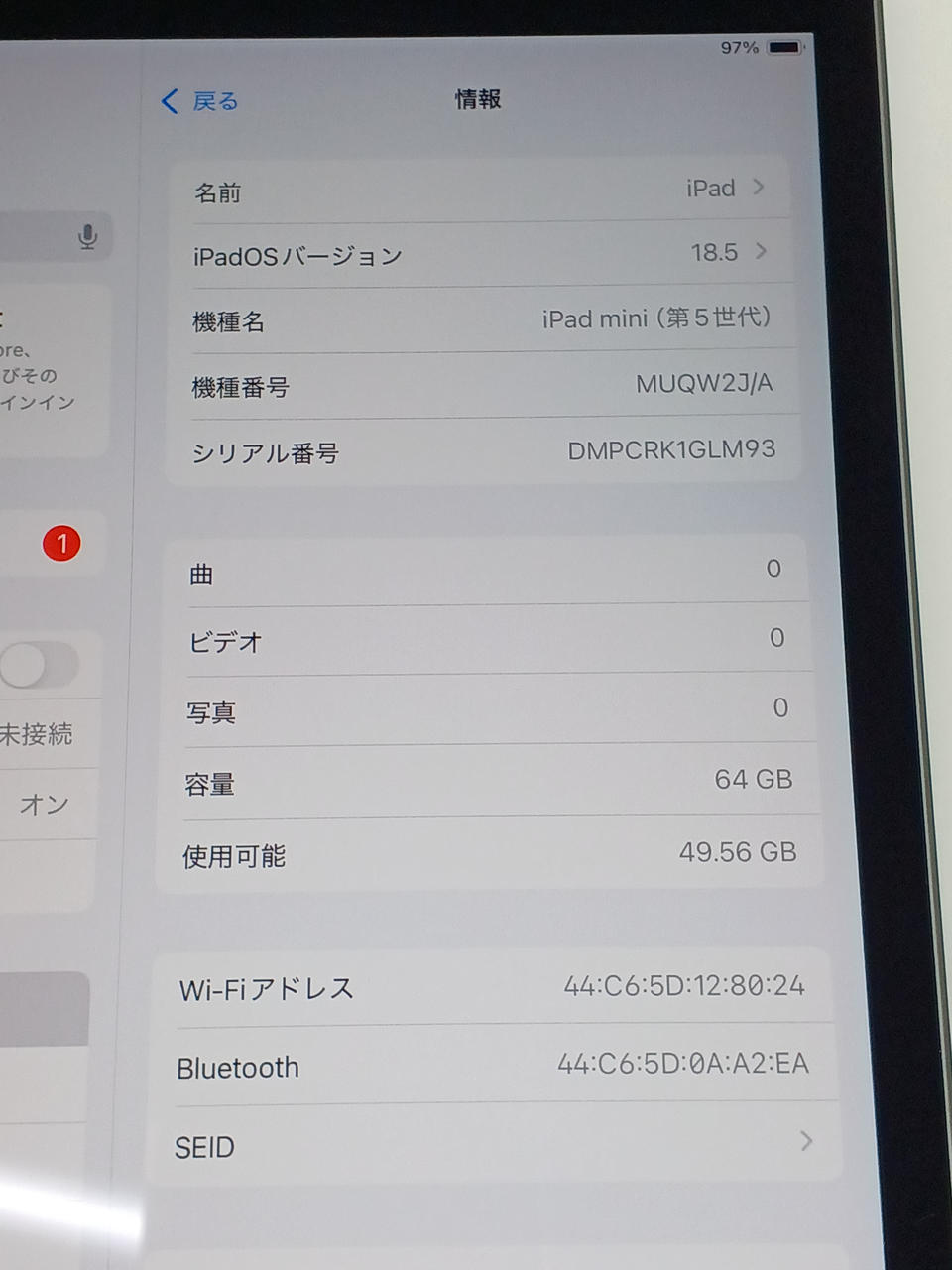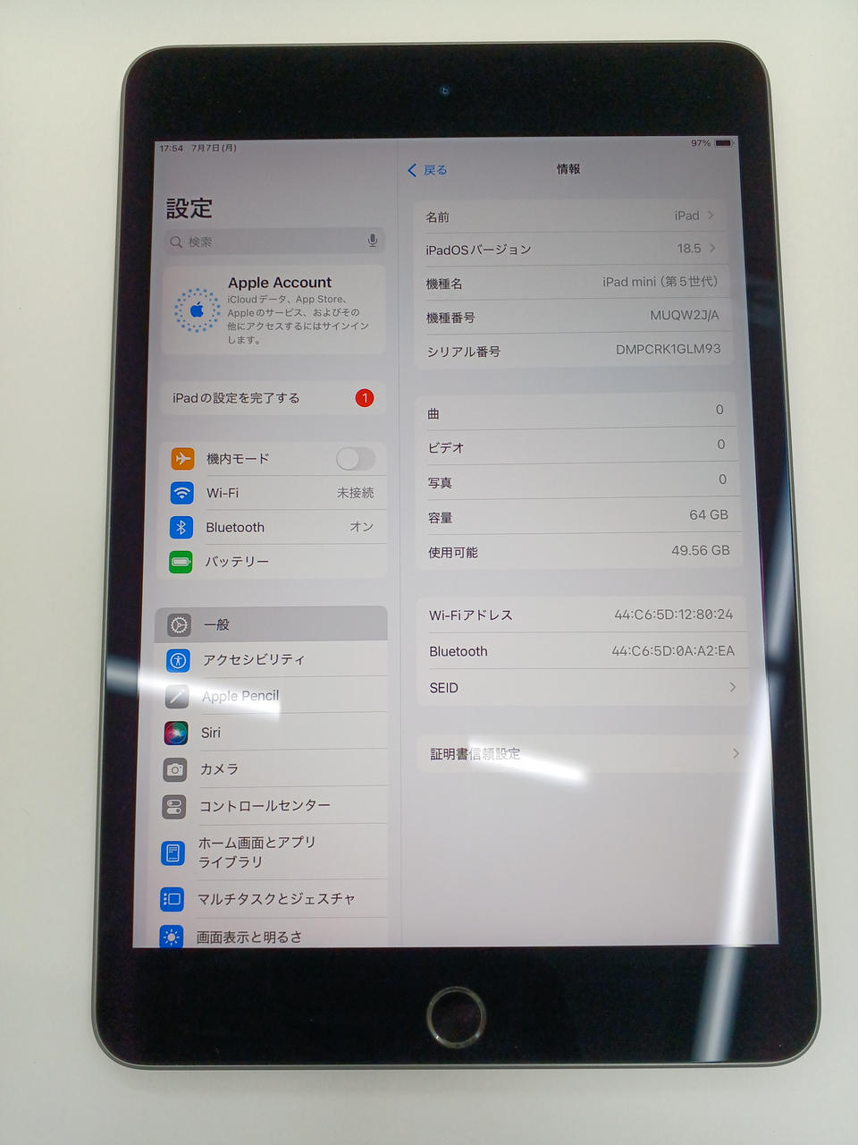 iOS:18.5 ストレージ容量:64GB CPU:Apple A12 |