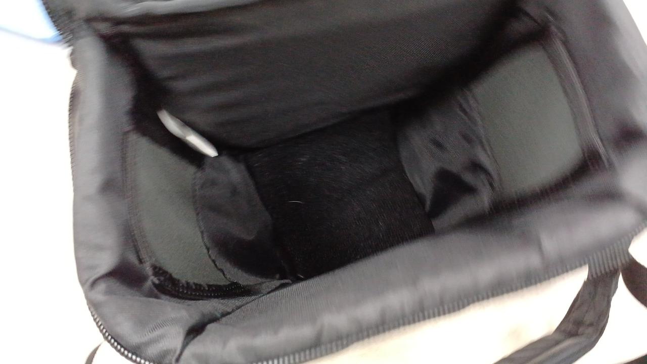 レンズを付けたまま大型の一眼レフカメラを安心して持ち運びできる保護パッド入りのカメラバッグ |