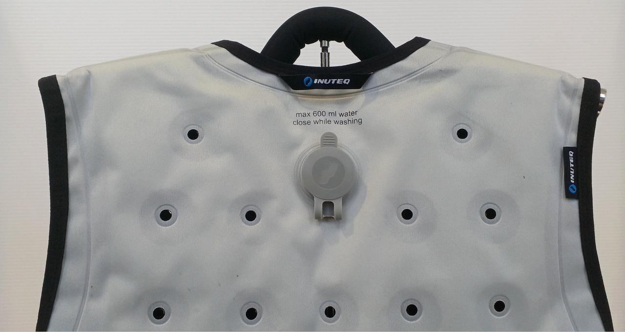 ベスト後から水400~600ml入れるだけで冷却効果が! |