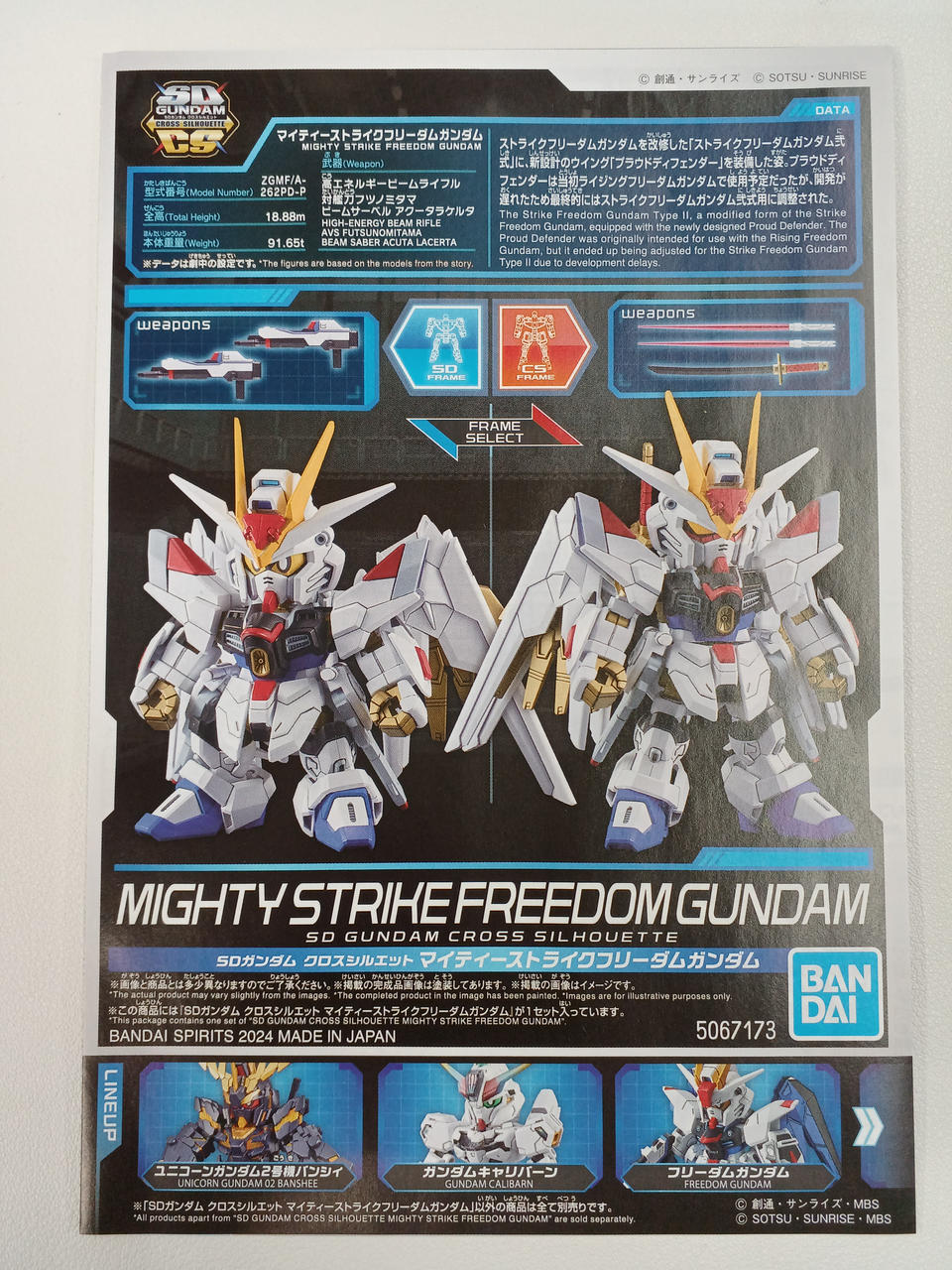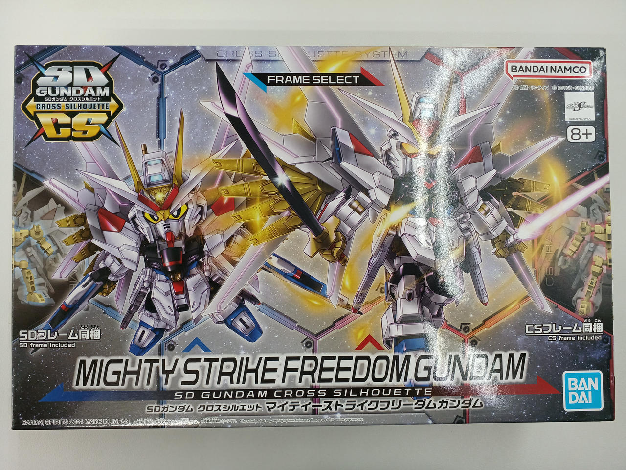 SDとCS好きなフレームを自由に選択できカスタマイズの幅も広がり、肘、膝関節も可動!対艦刀フツノミタマとビームサーベルを構えるポーズも決まります!