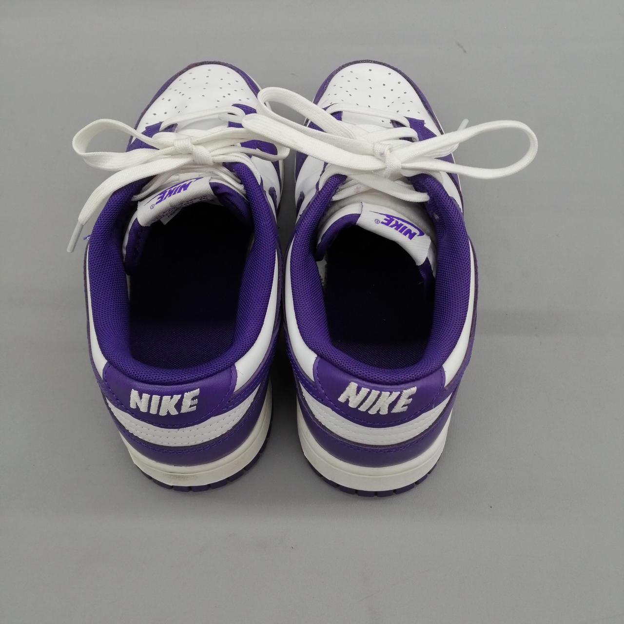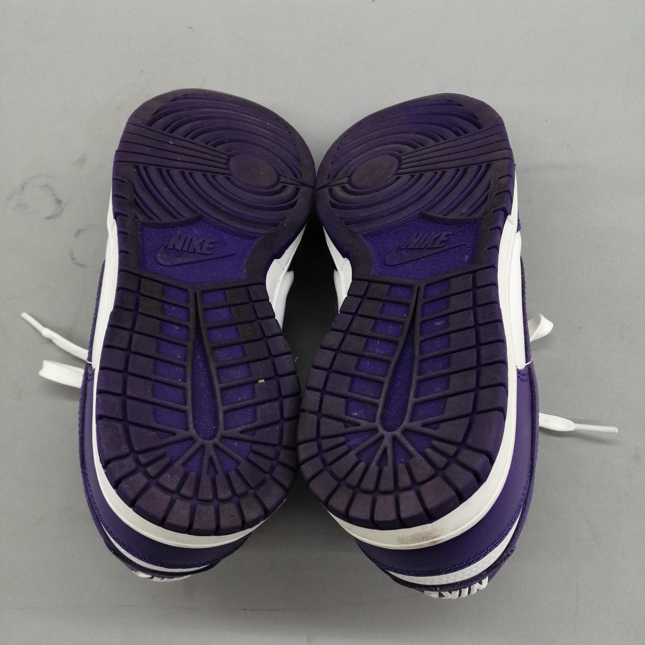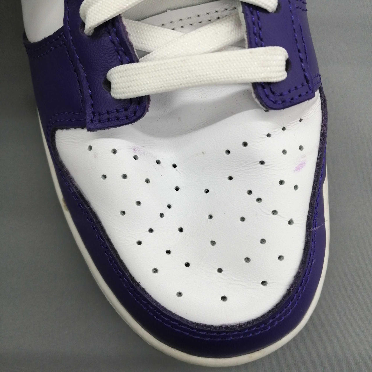 アッパー部分と靴紐に紫色の汚れがあります。 |