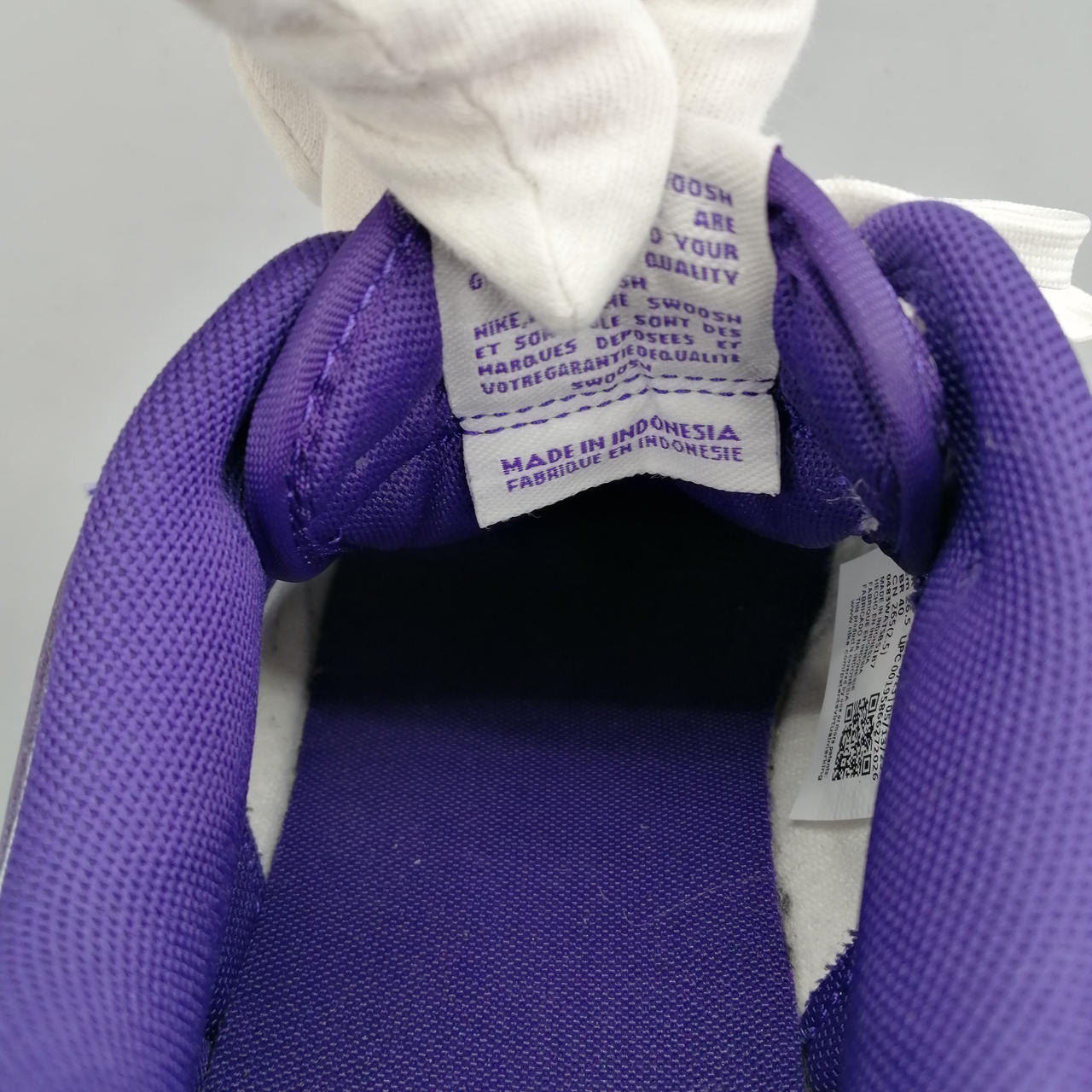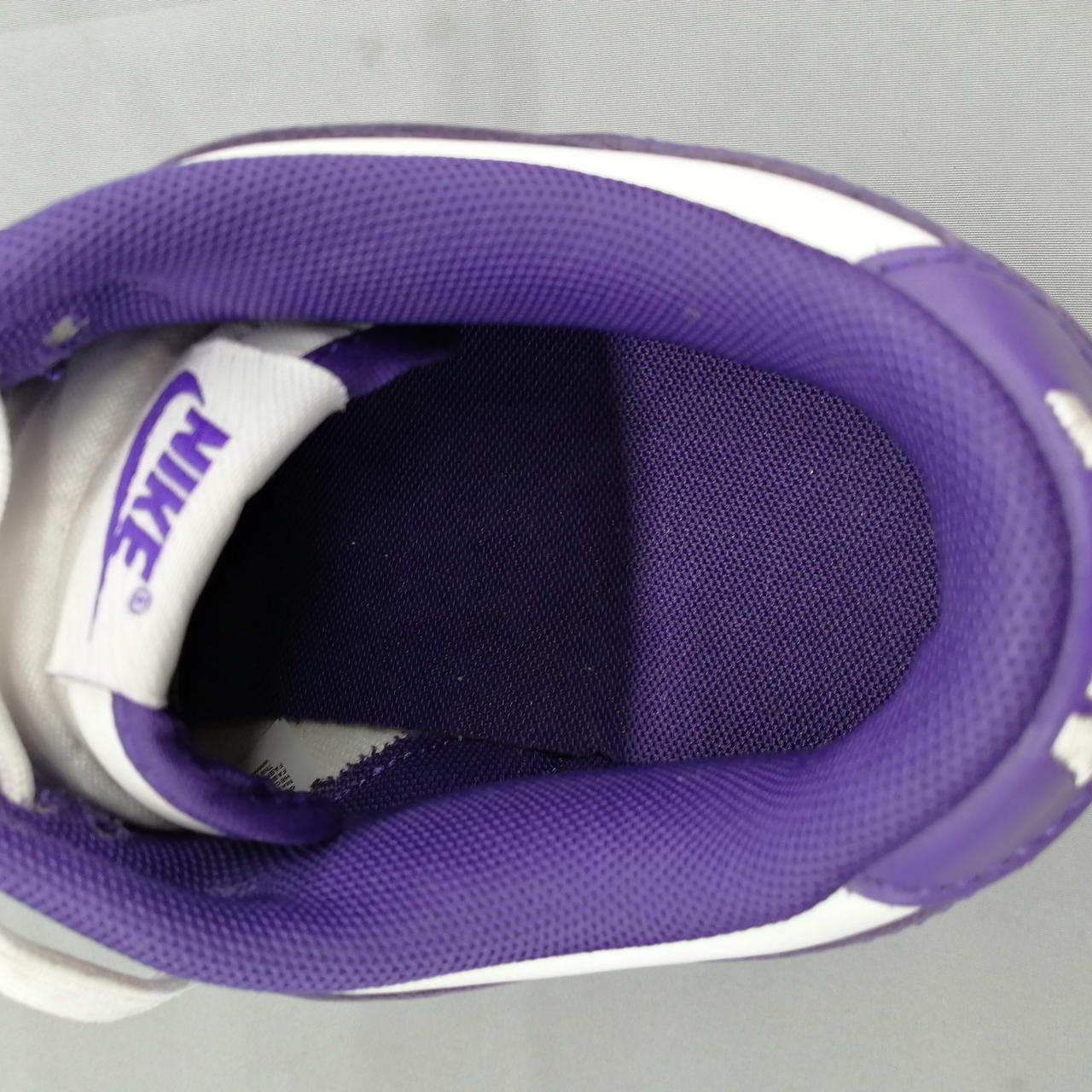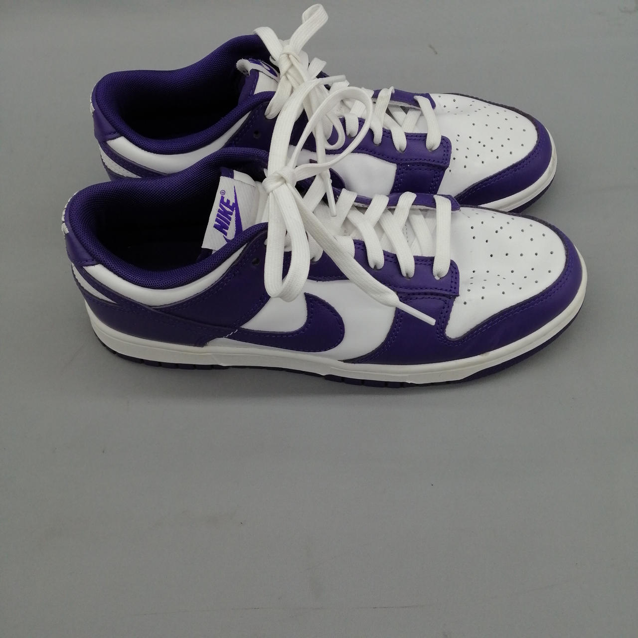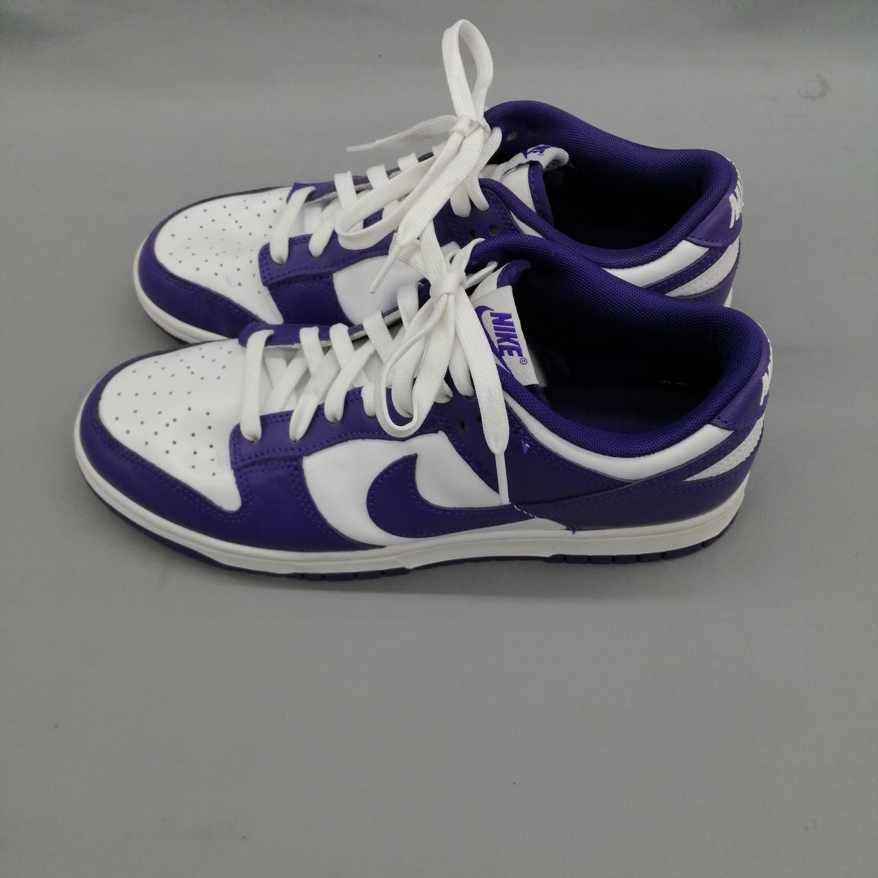 アッパー部分と靴紐に紫色の汚れがあります。 |