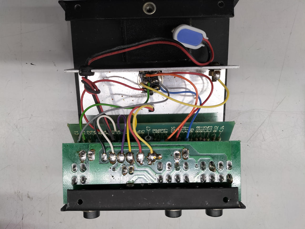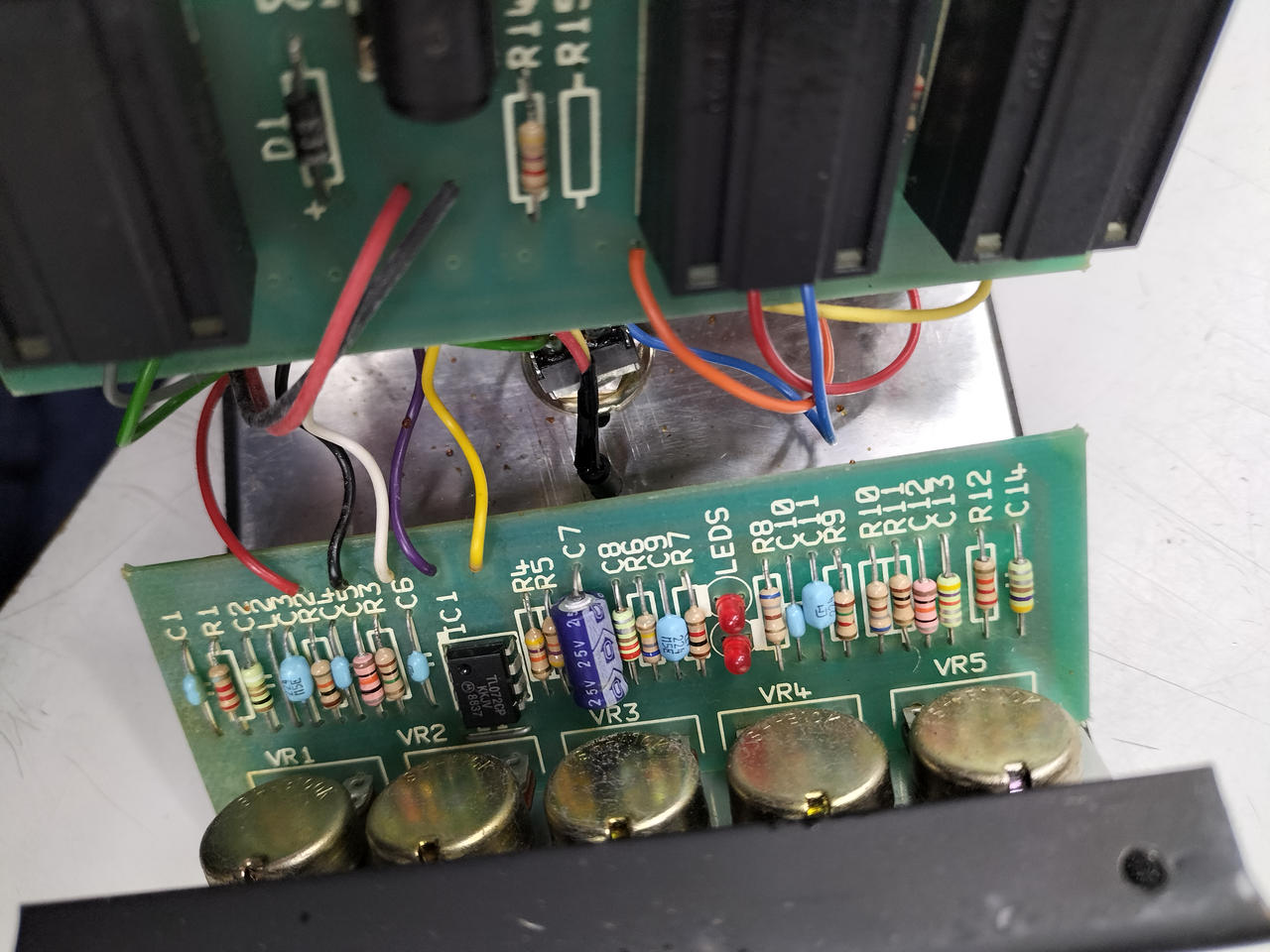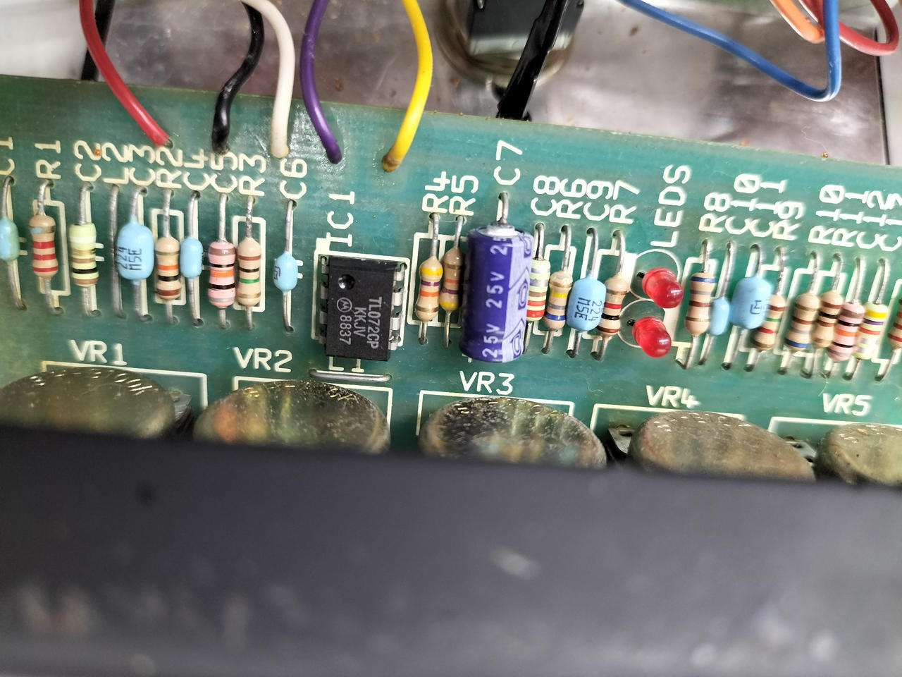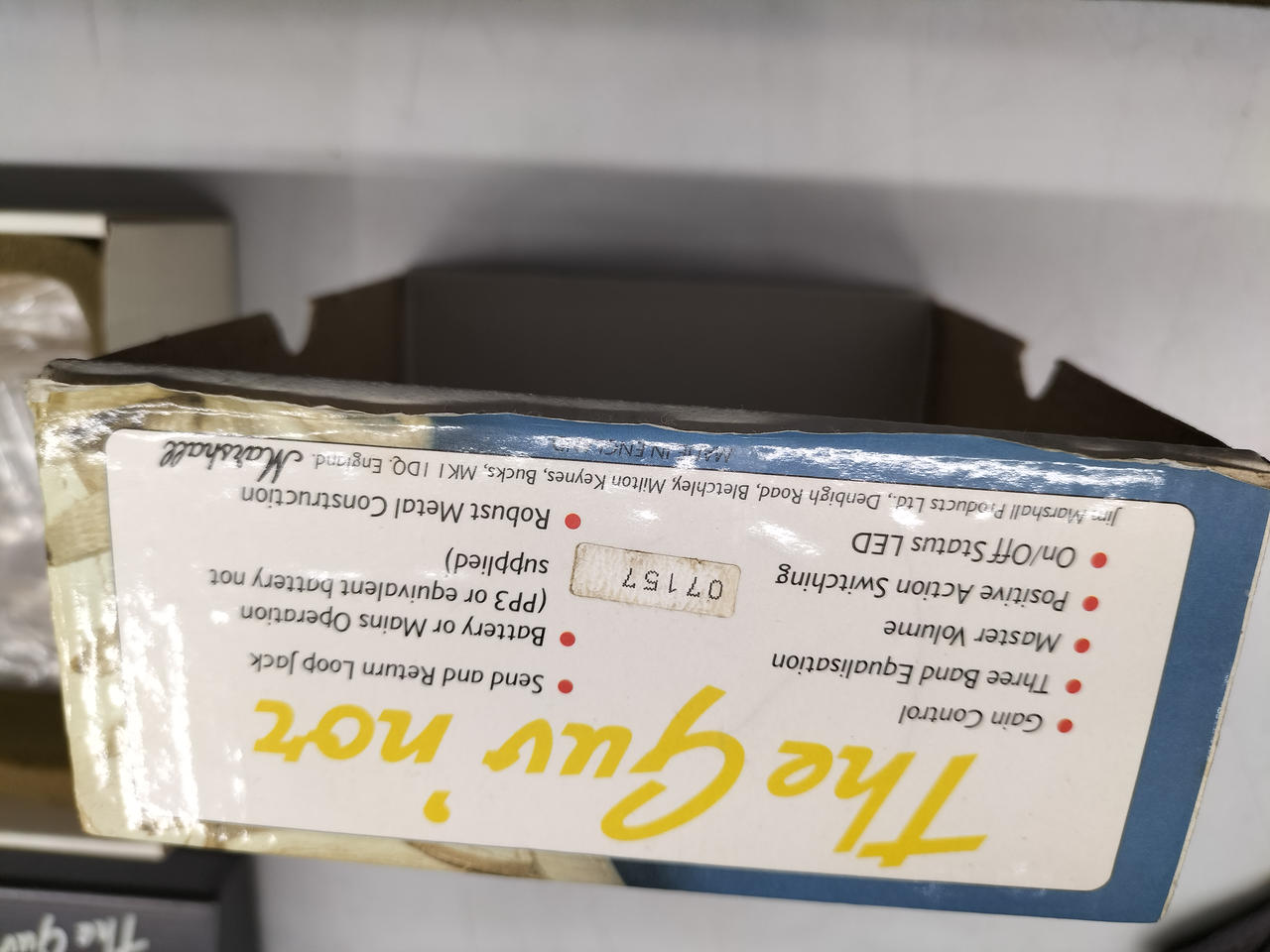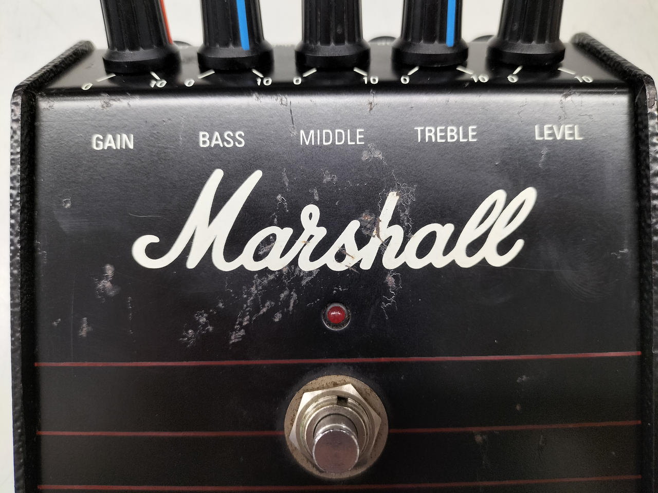 「マーシャル・スタックのサウンドをペダルに取り込む」 という目的で設計されたディストーション。Made in Englandのオリジナルの個体。緑基盤の前期型、オペアンプはTL072CP(モトローラ)が搭載されています。 |