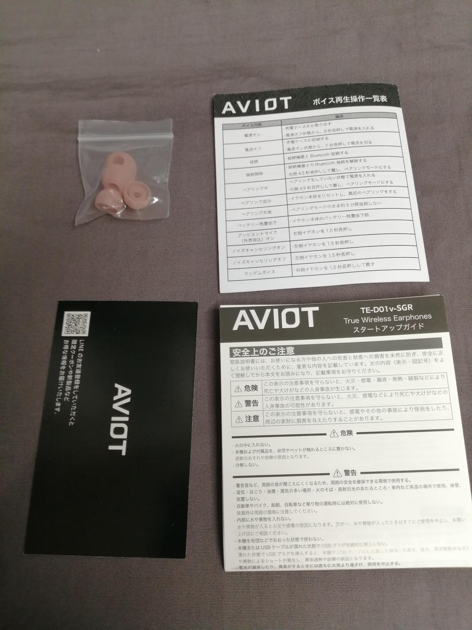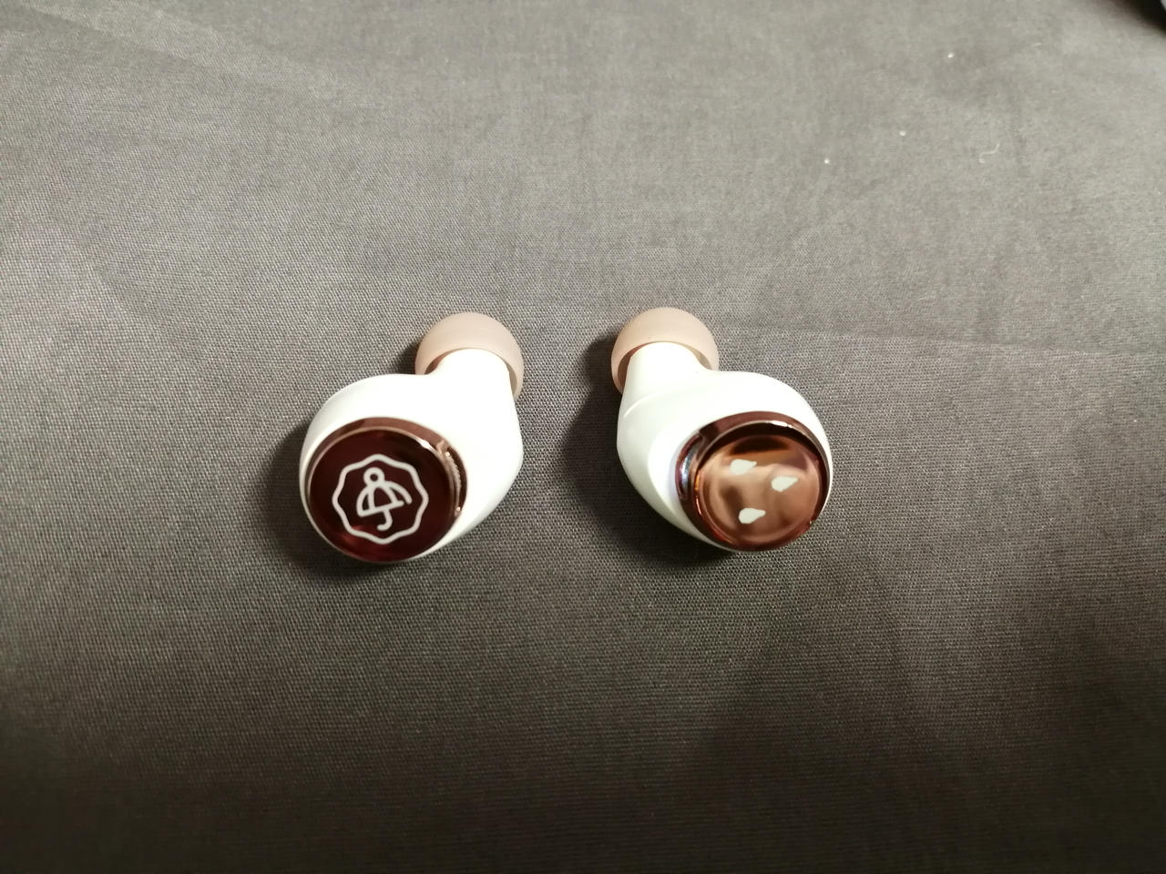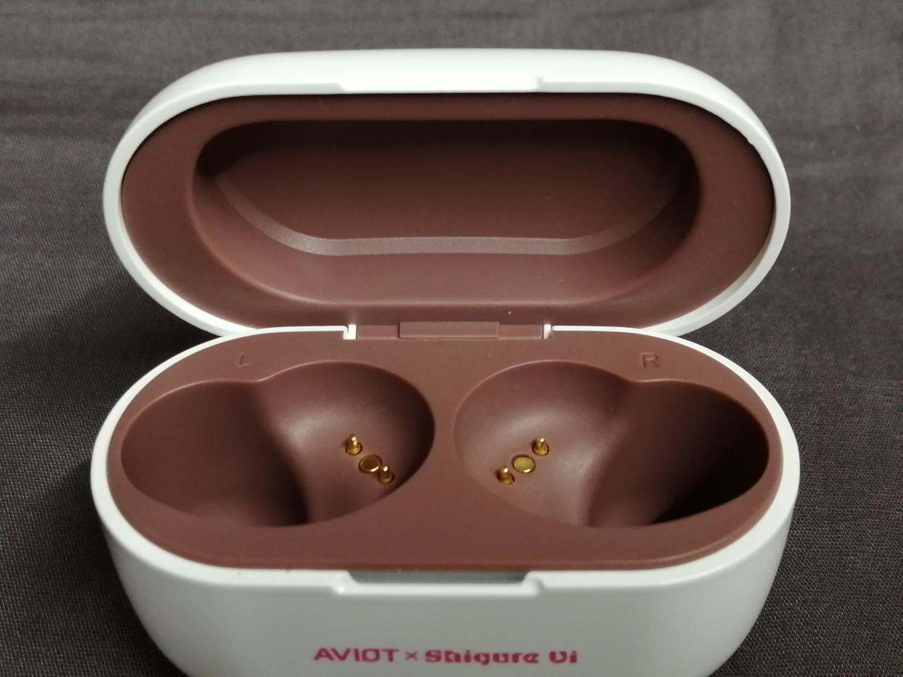 クリーニングの後エタノールで消毒済みですが、本体イヤホンカバー取り付け部付近に若干汚れがあります。ケース底部に傷多数あり。充電はできましたがバッテリーの状態は不明です。 |