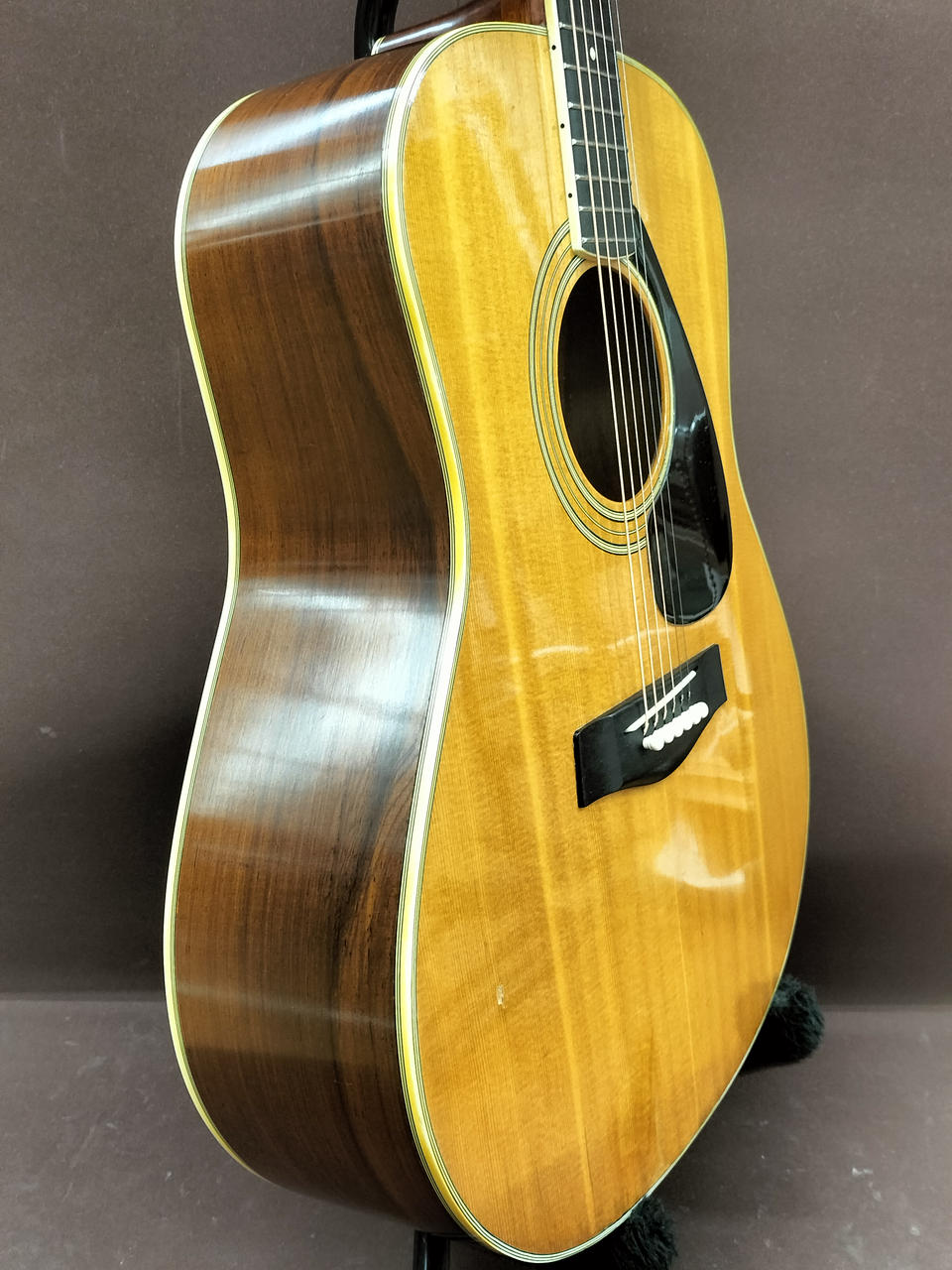 歴史を彩る黒ラベル FGシリーズ。1974~75年とわずかな期間の製造となったモデル!こちらはシリアルより1975年製の1本。太いネックとジャンボボディで良く鳴ります! |