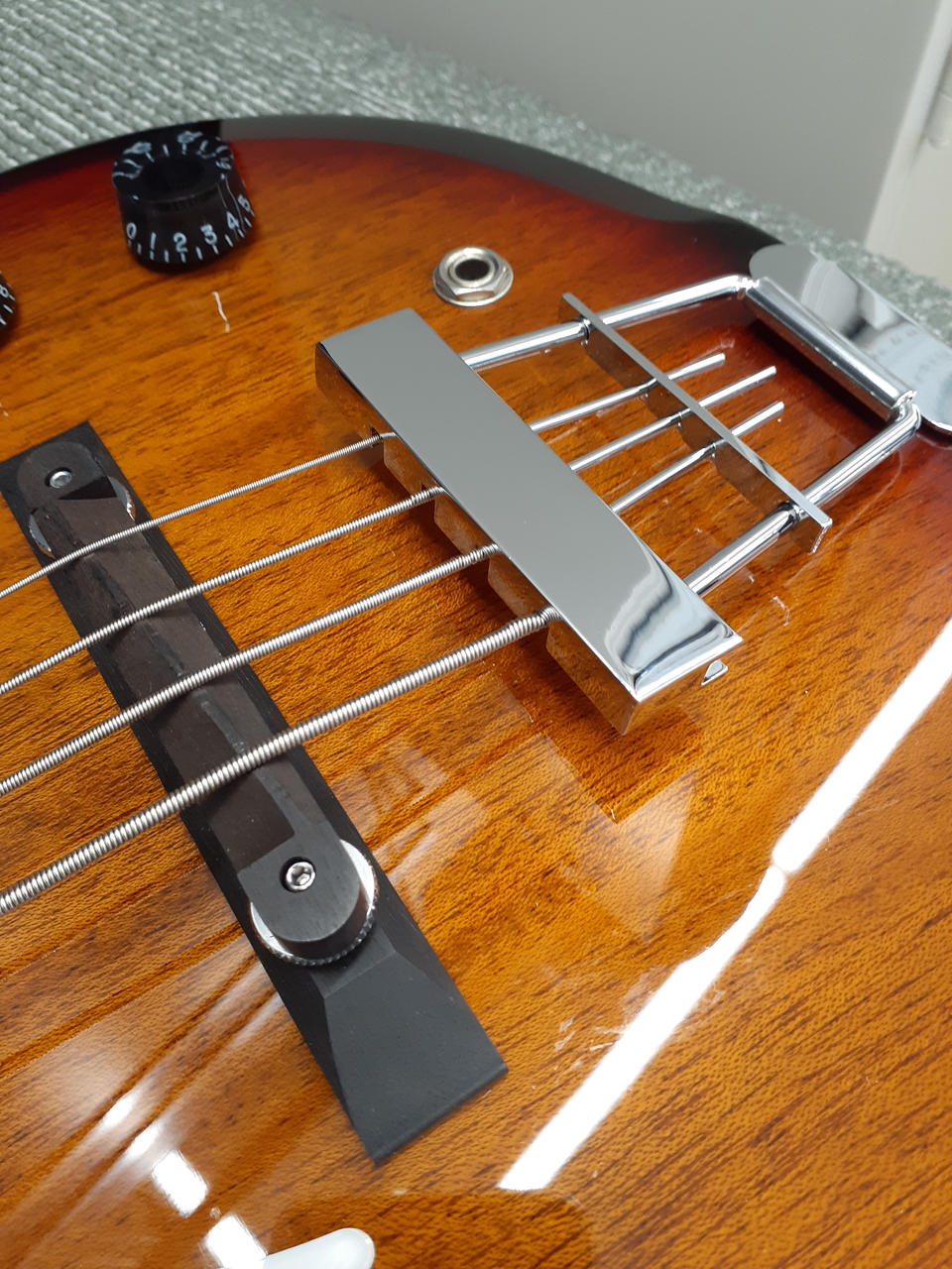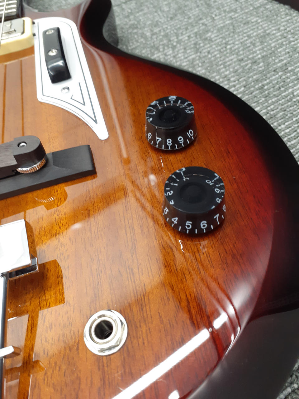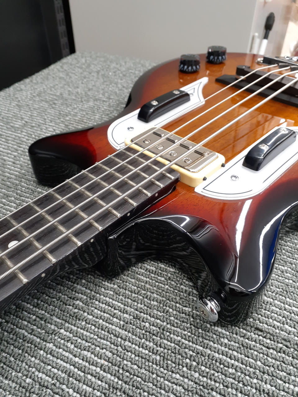 キズや汚れがほとんどなく、とても規定ない状態です。フレットもほとんど弾かれていない状態です。 |