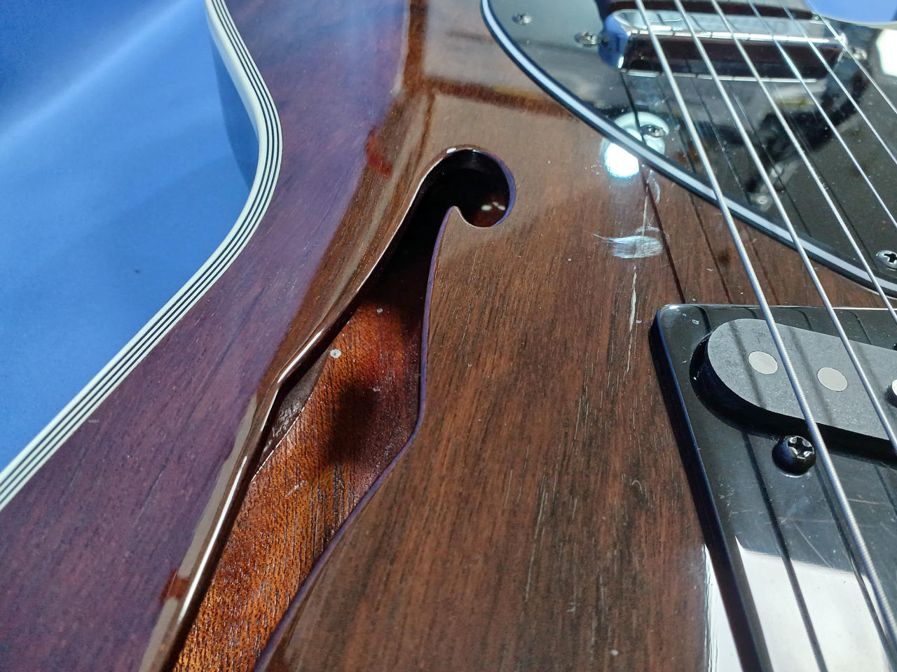 キズ:Fホール上部・下部に凹みあります。演奏には支障ございません。 |