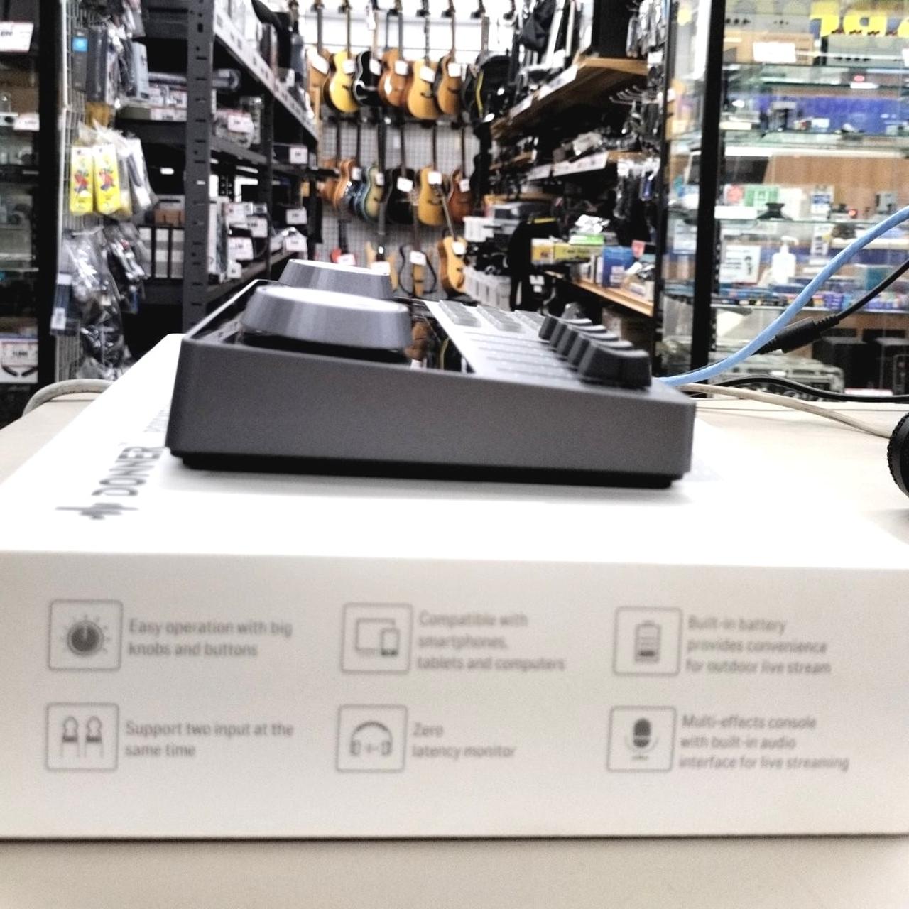 6.35mm単一指向性マイクも付属しています。最大6時間持続する充電式バッテリーで、いつでもどこでもライブ配信を楽しめます。 |