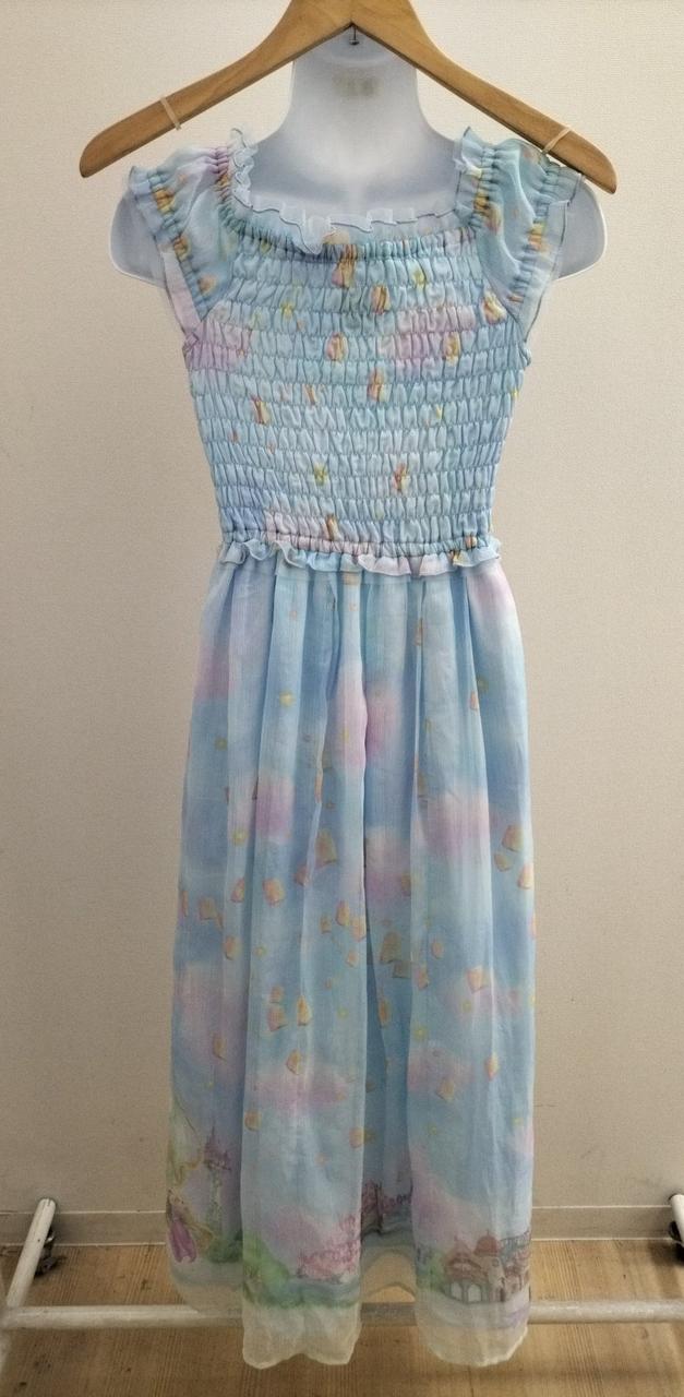 ワンピース全体に描かれたランタンや、裾部分にあしらわれたラプンツェルとフリンが可愛らしいお品物です♪
