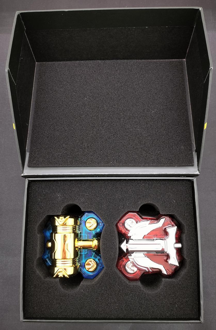 DXハンマーレイズバックルはゴールドメッキverにDXアローレイズバックルはシルバーメッキverになっています。