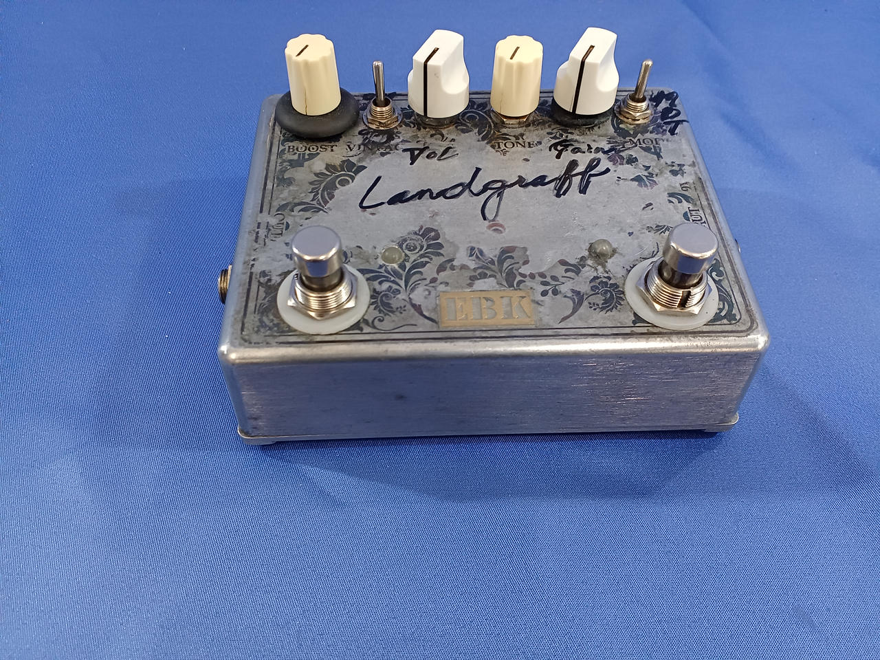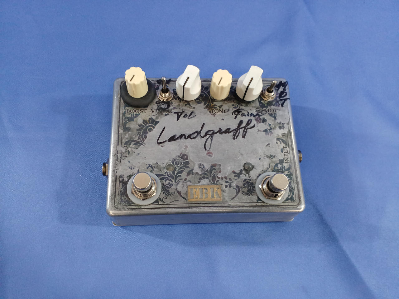 ランドグラフの回路をベースにしたモディファイエフェクターです。スイッチを2つ、さらに単体で使えるブースターも増設されています!! |