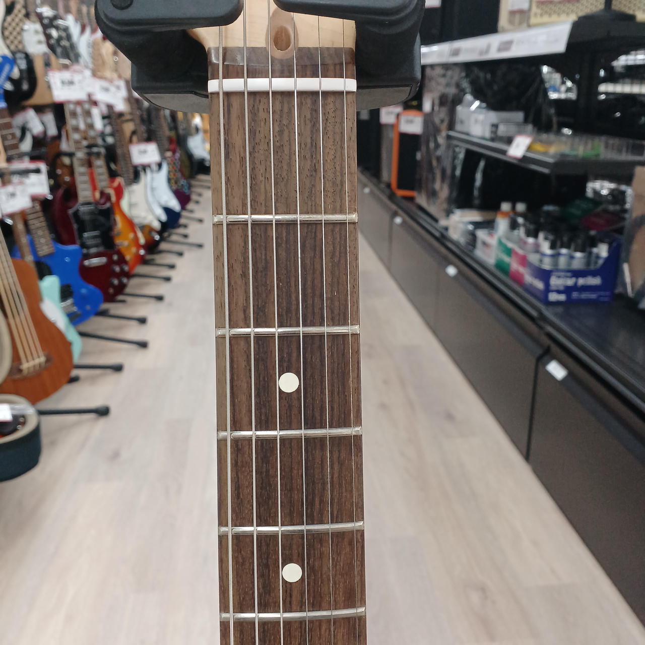 フレット8割程度、ネックストレート、トラスロッド左回り限界です。 |