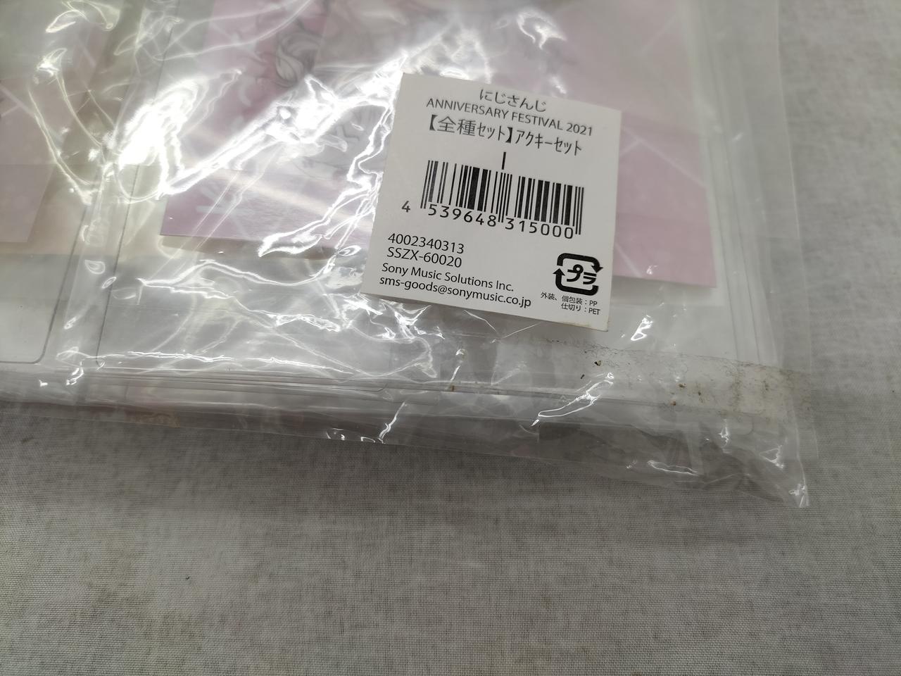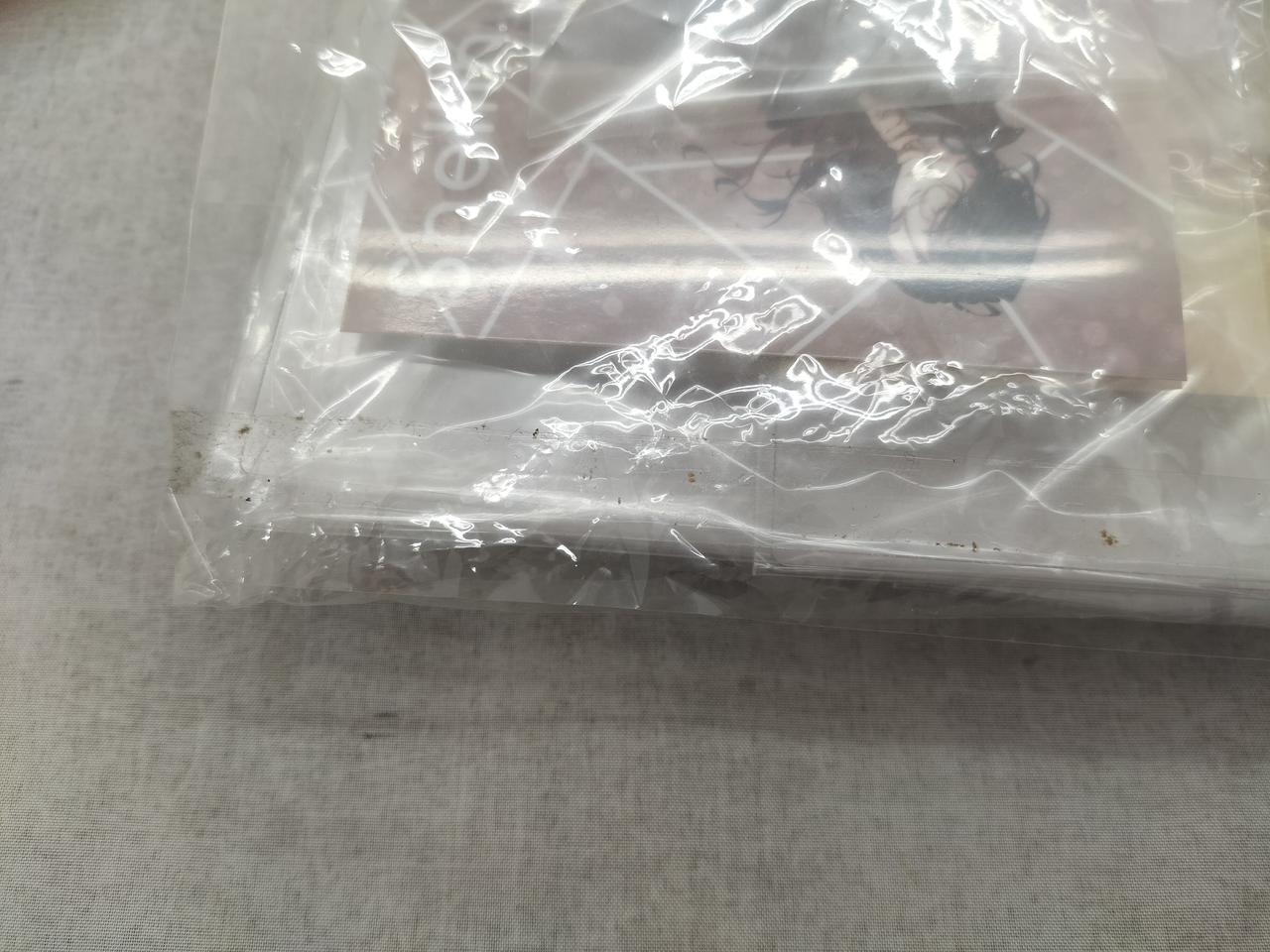 アクリルスタンドをまとめて入れている大きい外袋の方、袋のとめ口汚れあり。 |