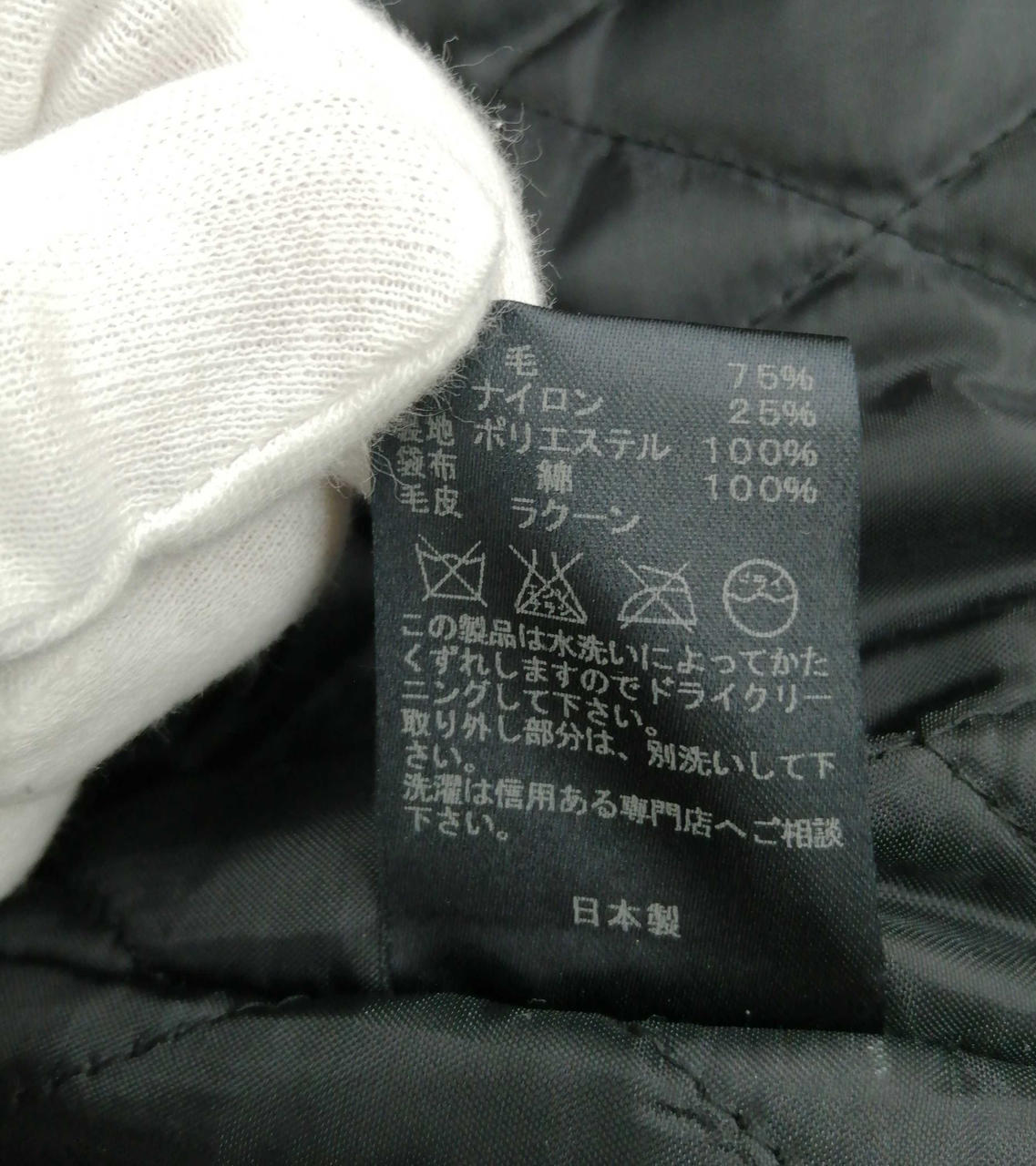 ウール:75% ナイロン:25% フード着脱可、やや使用感あります |