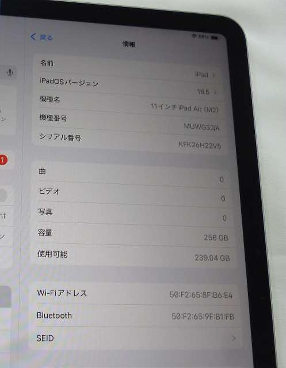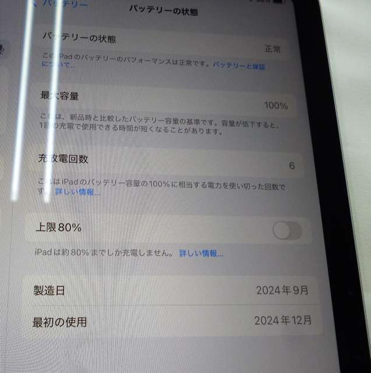 バッテリー最大容量:100% iPad OS:18.5 |