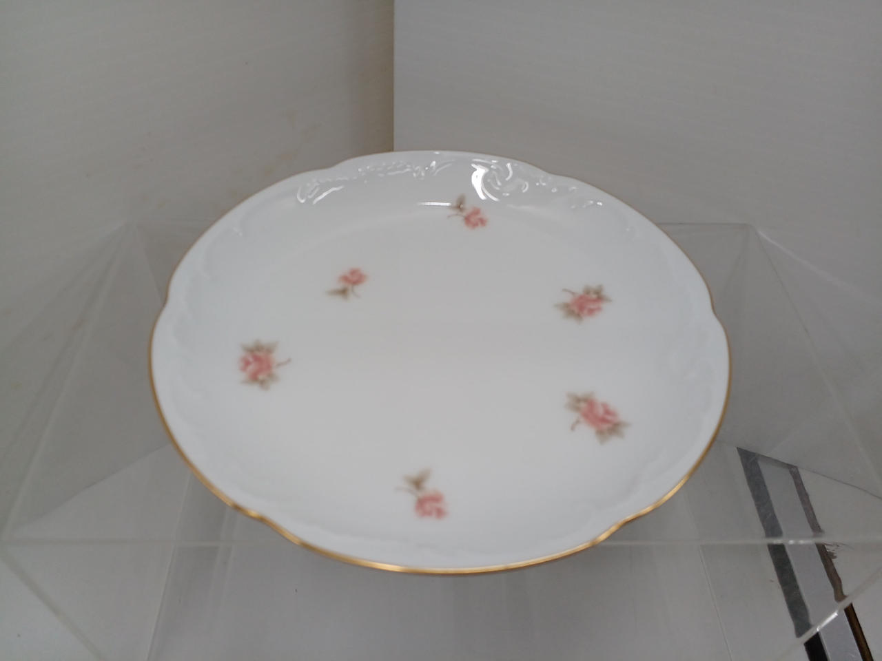 サーモンピンクの小さなプチローズとベージュ系の葉の組み合わせが、程よい甘さで可憐なデザインです。