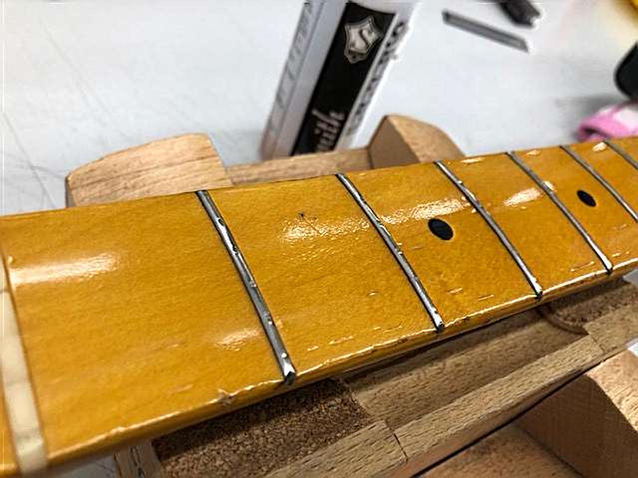 ネックは現状ほぼストレート トラスロッド締め方向余裕有り フレット残6割 12F弦高(6弦側:1.8mm、1弦側:1.6mm) 重量:3.50kg ※全体的にキズ、打痕多いです 外観現状渡し |