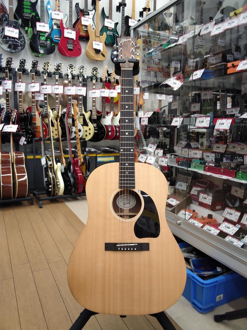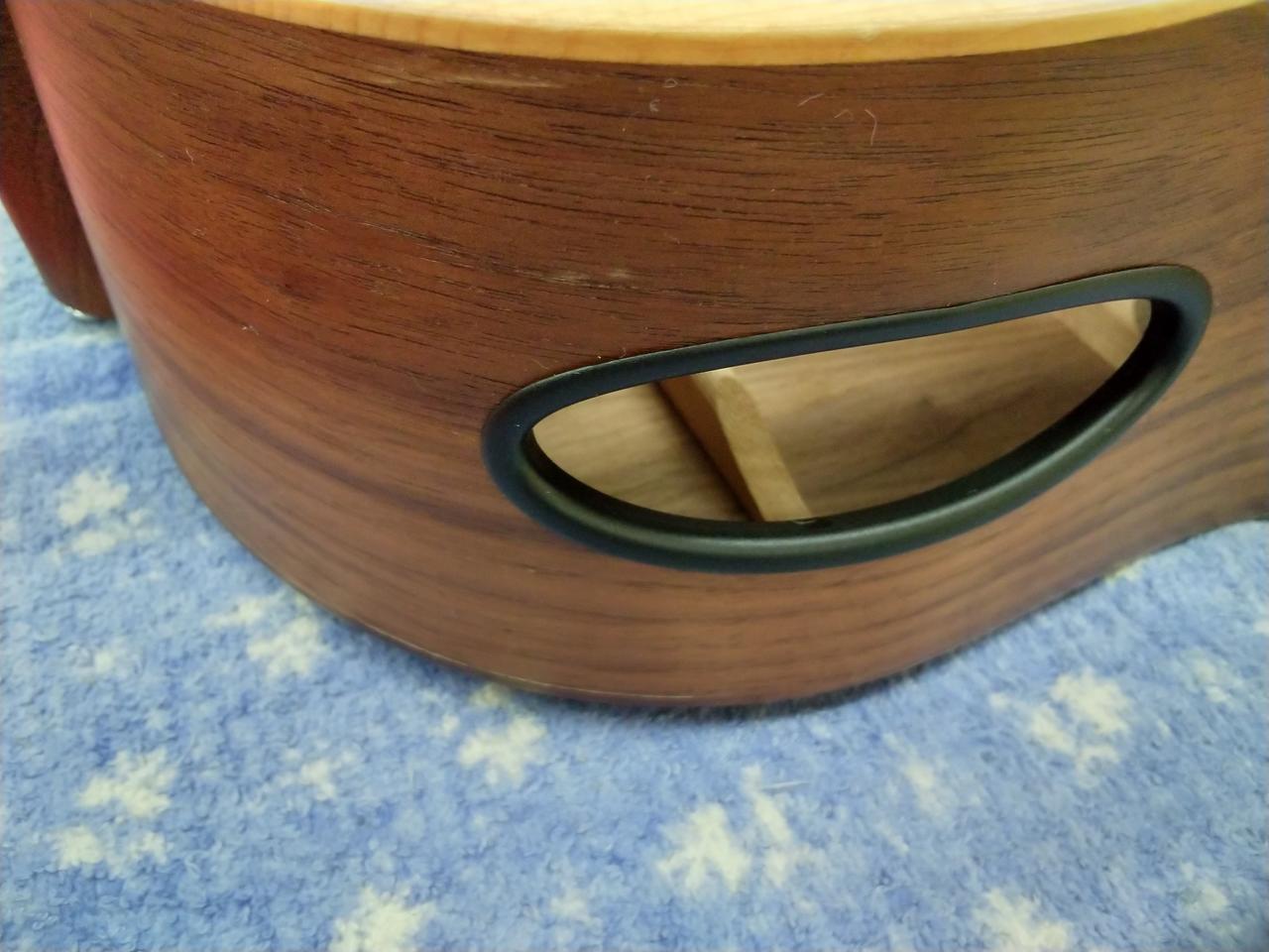 ボディサイドの演奏者の為の、返し音 用のサウンドホールが特徴的な一本です。 革新的な木材構成もあり、サテン塗装らしい自然な響きの中に、特有な高域に伸びのある印象の、新しいギブソン・アコギ・サウンドといった一本です。 |