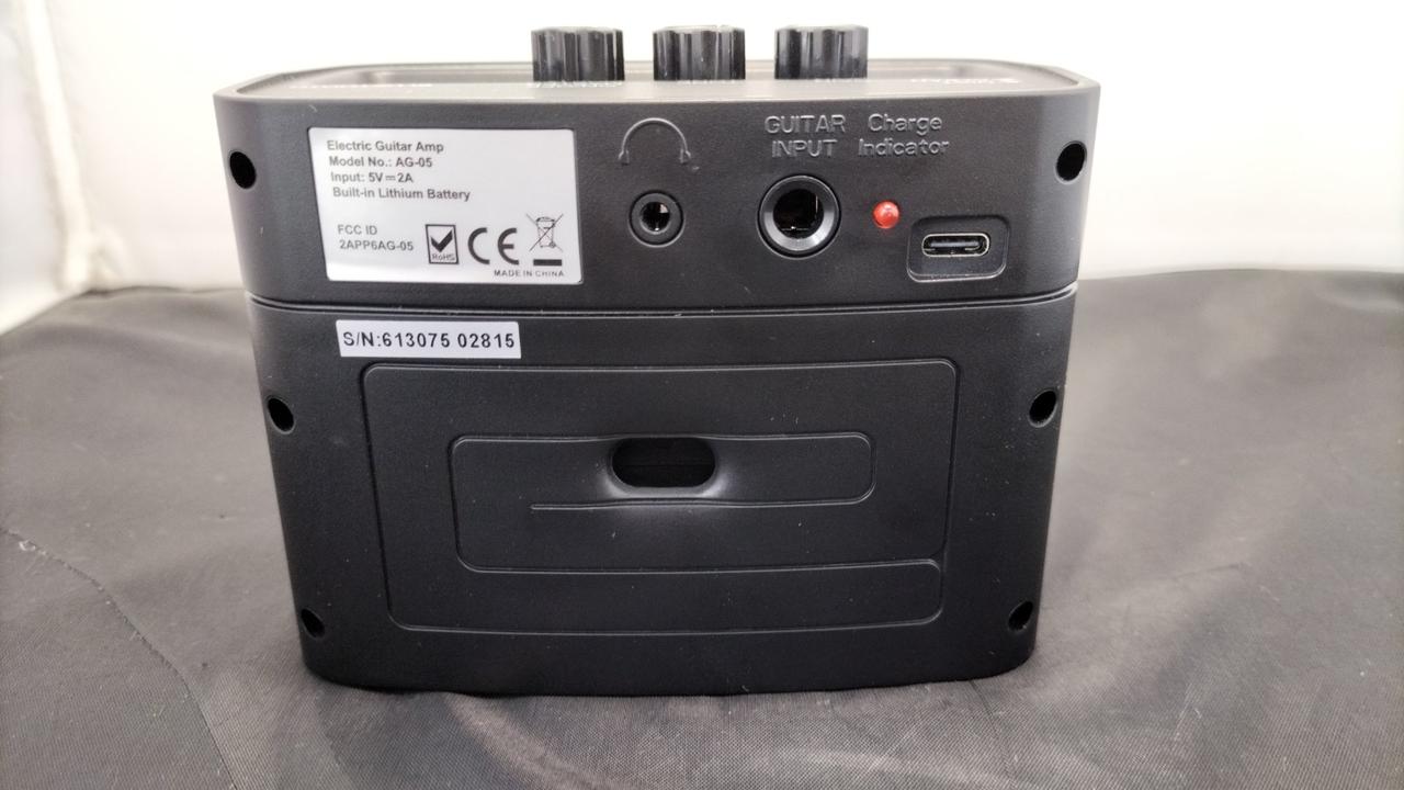 BLUETOOTH 搭載のポータブルギターアンプ 電源はUSB C-TYPE の充電式で、3時間充電の8 時間連続で使用可能 |