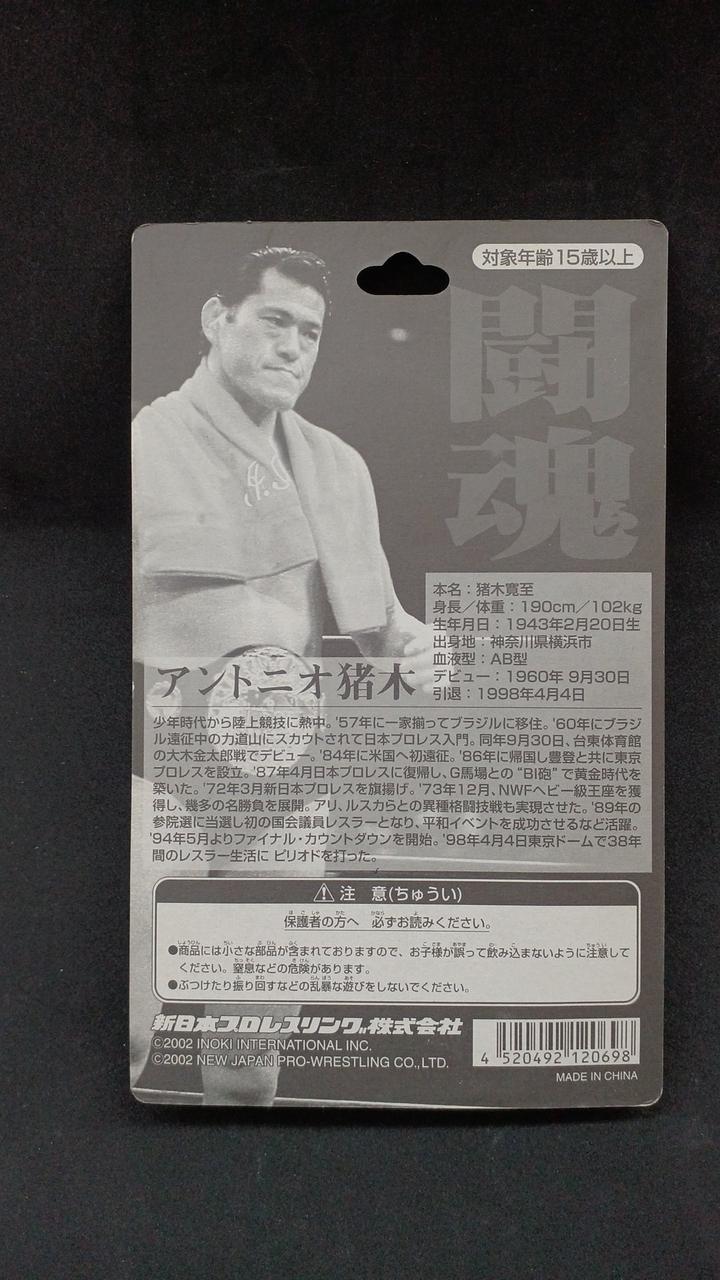 青いタオルをかけているアントニオ猪木のフィギュアです