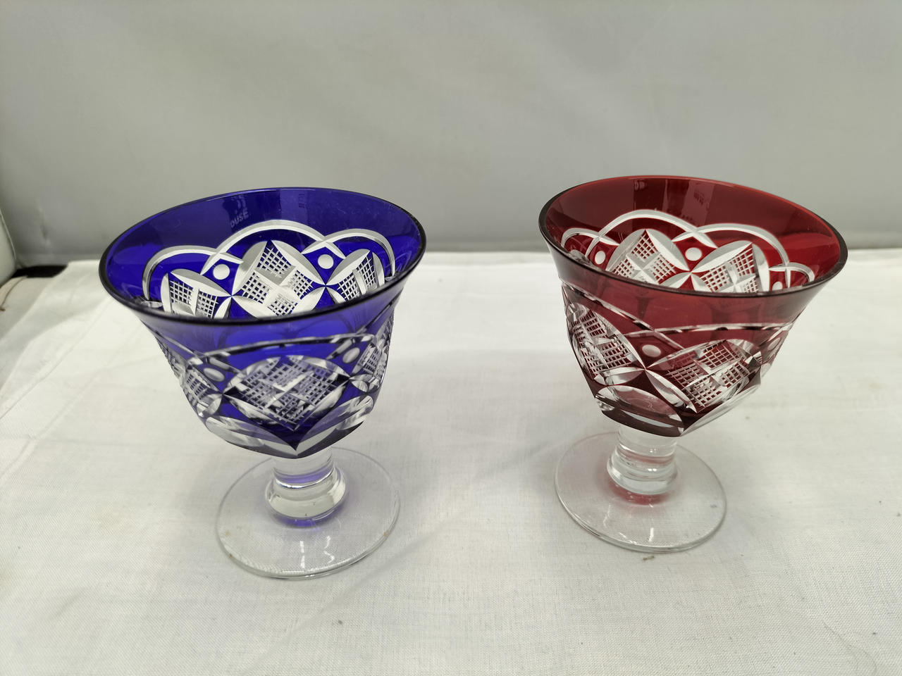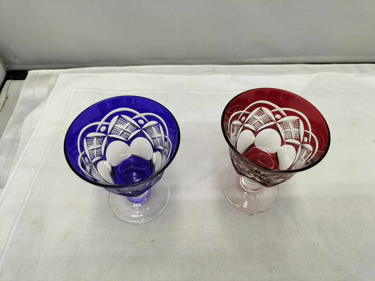 赤色と青色被せの伝統の江戸切子のペアグラスです♪ |