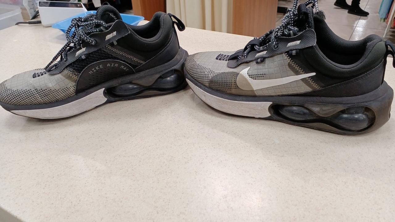 かかとに大型のエアユニットを配置し、ナイロンのような素材とメッシュを組み合わせたアッパー、ヒールタブを備え、サイドには「NIKE AIR MAX」のアーチロゴをプリント |