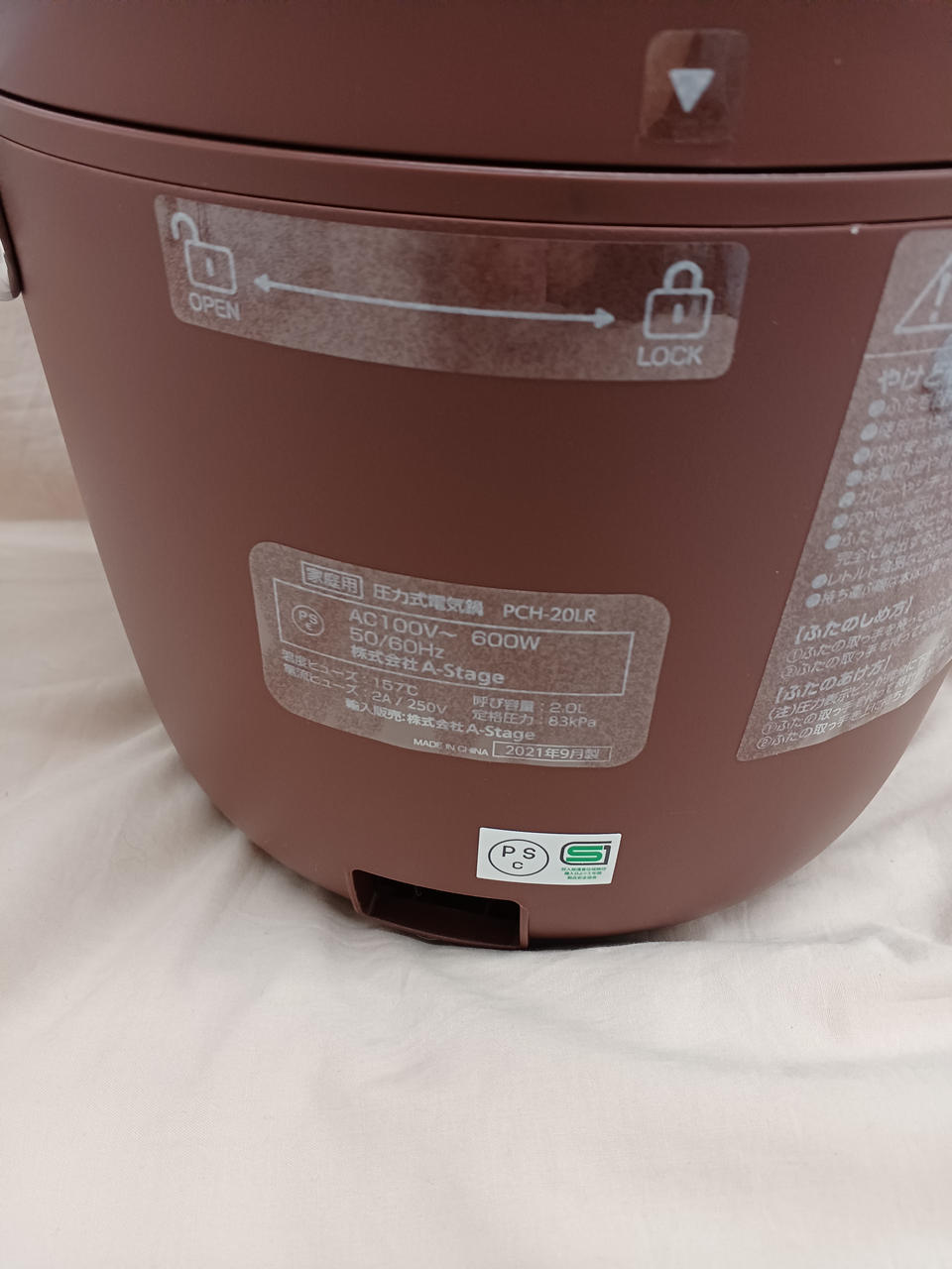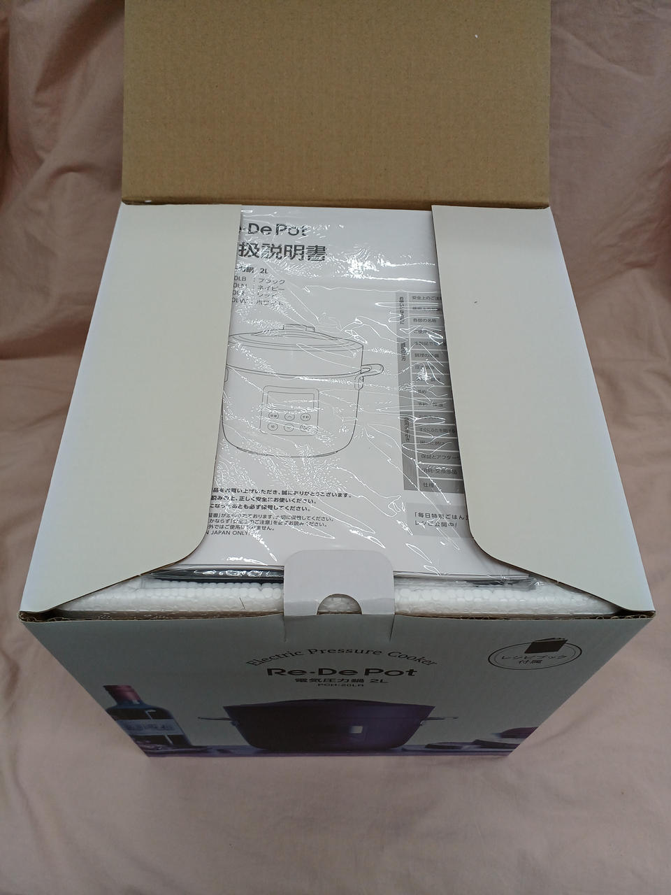蒸し台、計量カップ、内がま、内ぶた、電源コード、レシピブック、取扱説明書付き。 |