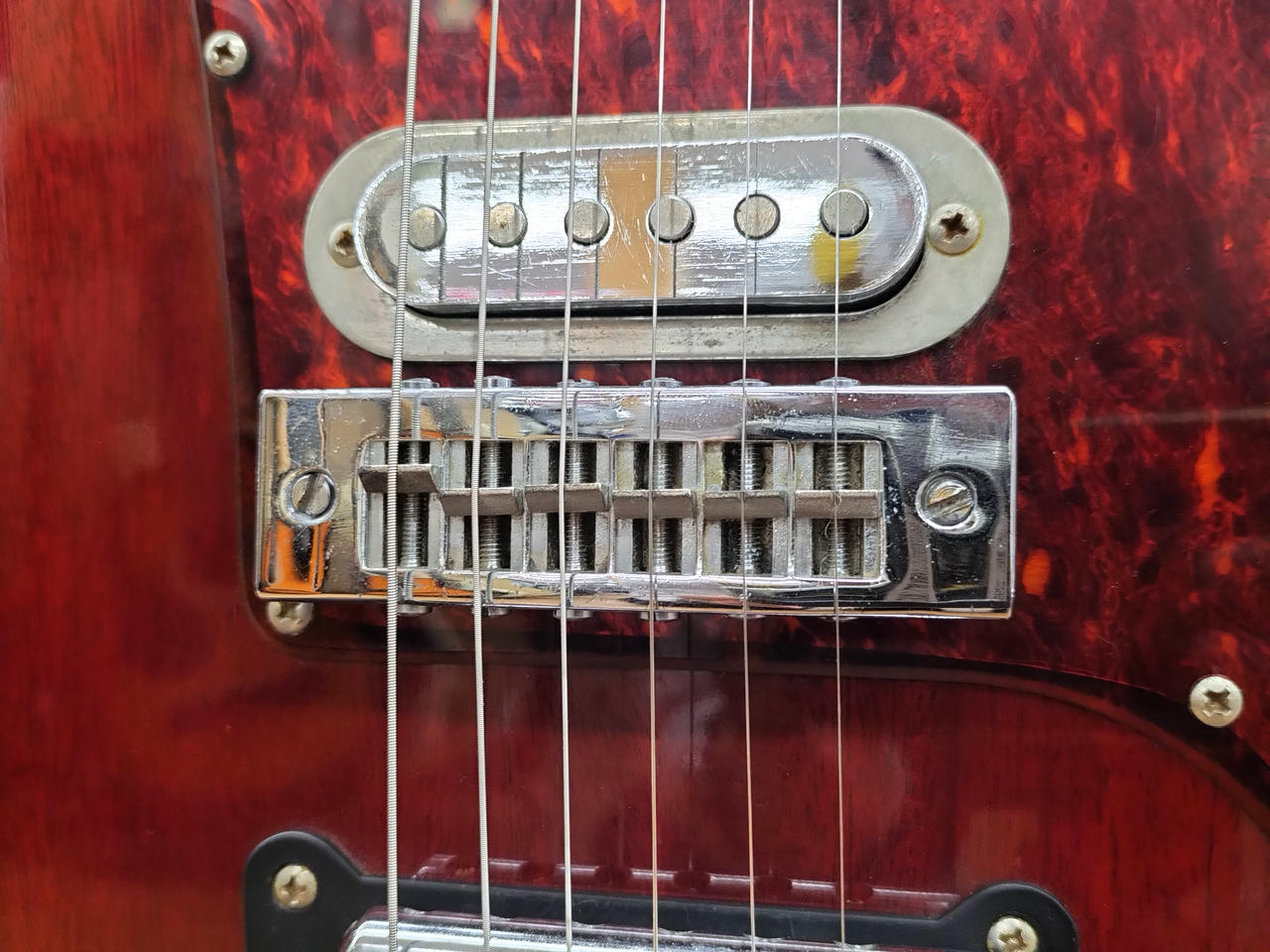 ネックは現状ほぼストレート、トラスは両方向余裕あります。フレットは残8割程度。 |