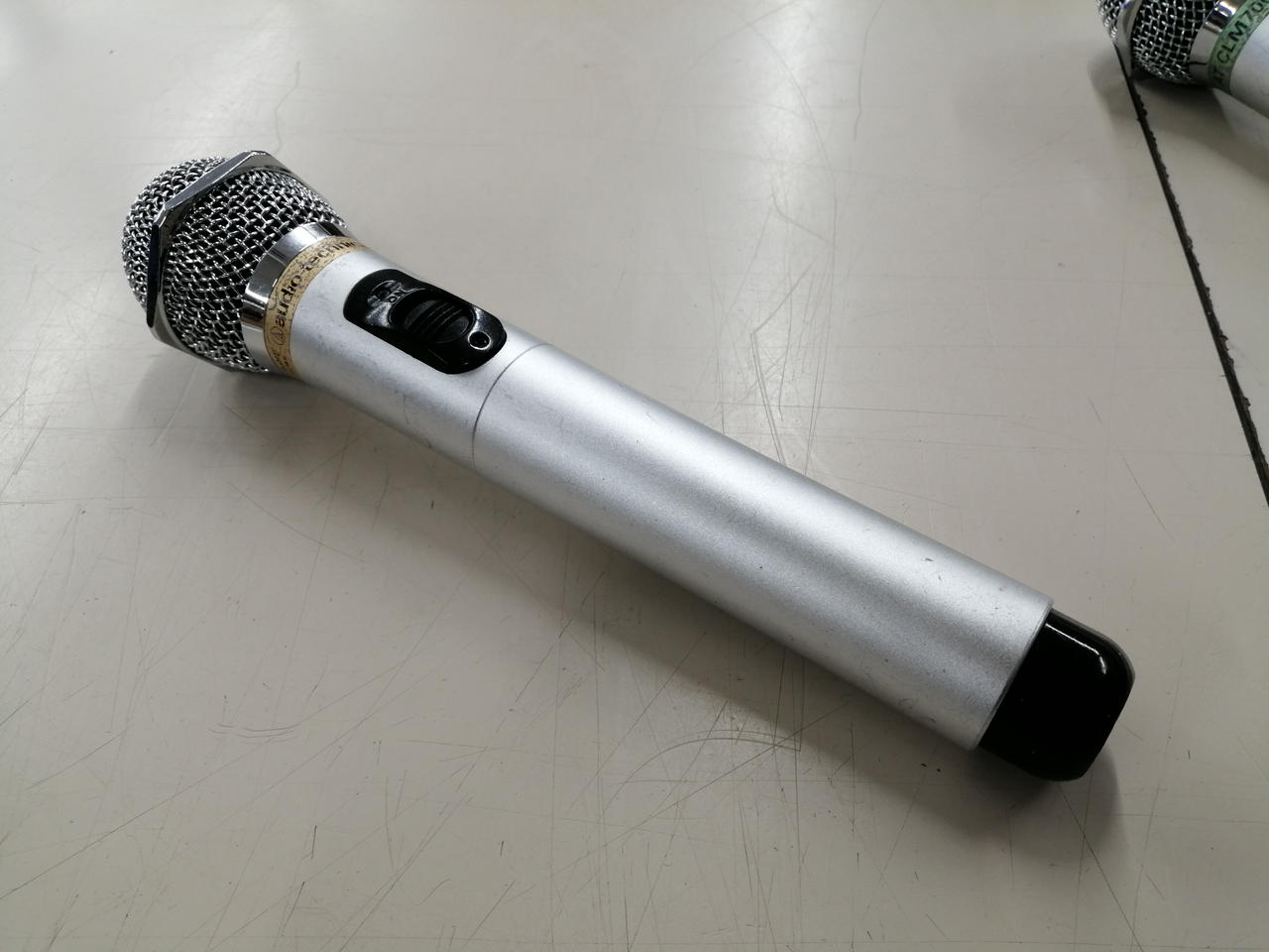 ワイヤレスマイク2本、充電器のセット。 |