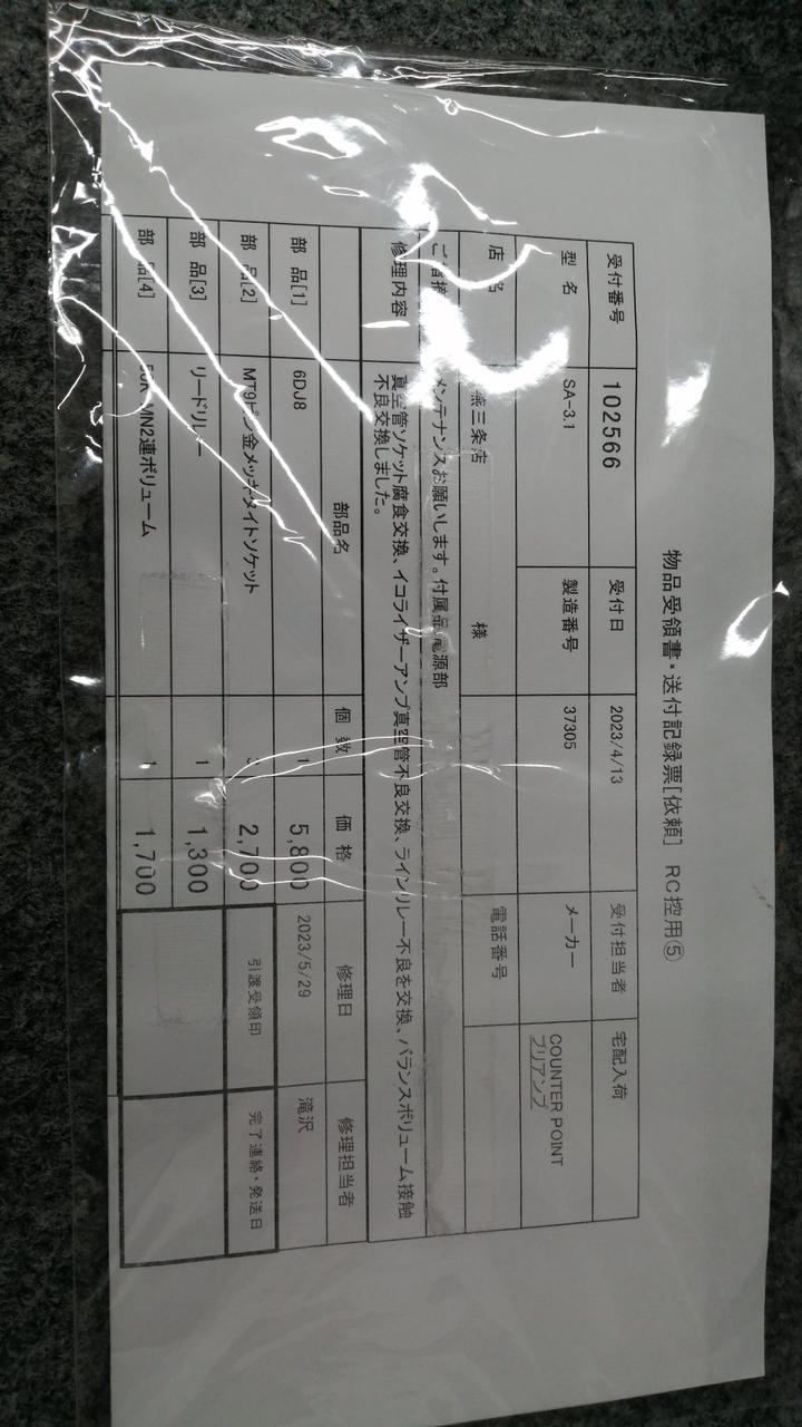 せっしょメンテナンス内容:真空管ソケット腐食のため、交換。イコライザーアンプ真空管不良の為、交換。バランスボリューム接触不良の為、交換。 |