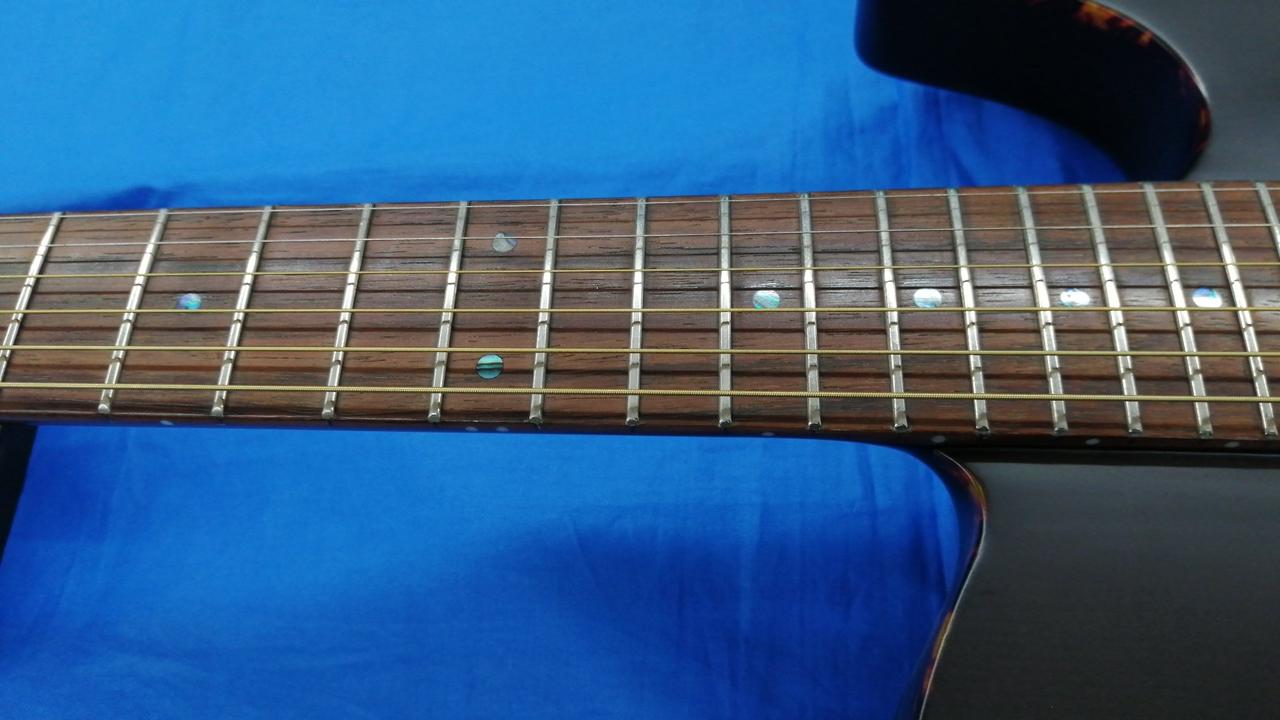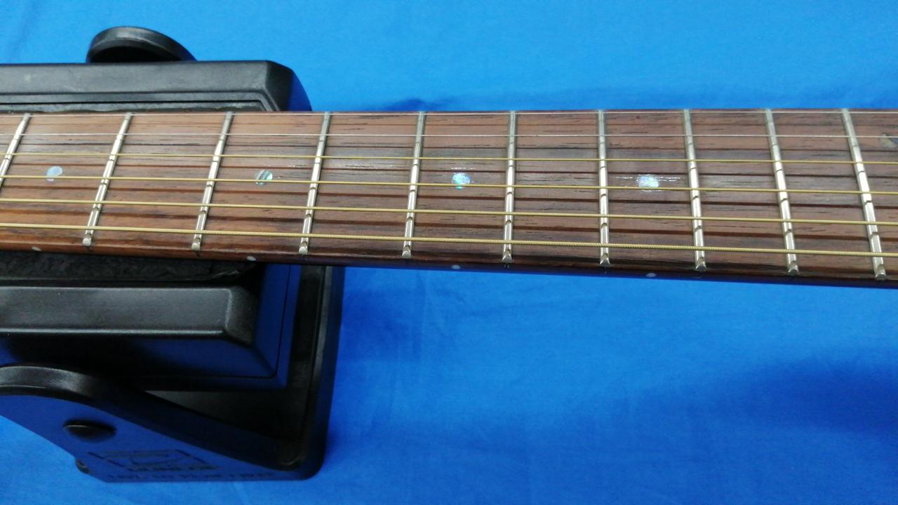 薄胴ボディ、低めの弦高でエレキギターライクに演奏できるエレアコギター。 |