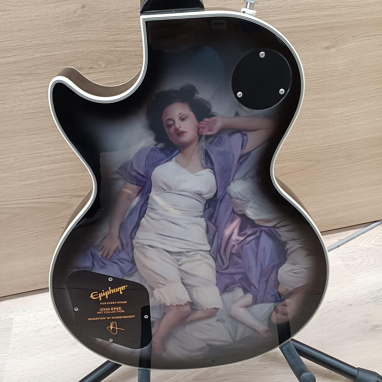 ロックバンド『トゥール”のギタリスト、アダム・ジョーンズの最新シグネチャー・コレクションの第5弾として、 米国の画家 Korin Faught の作品” Sensation” がボディバックに描かれた新作をリリース 1979 Gibson Customシルバーバーストへのオマージュとしてアンティーク・シルバーバーストで仕上げられ、Protectorハードシェルケースが付属となります。 |