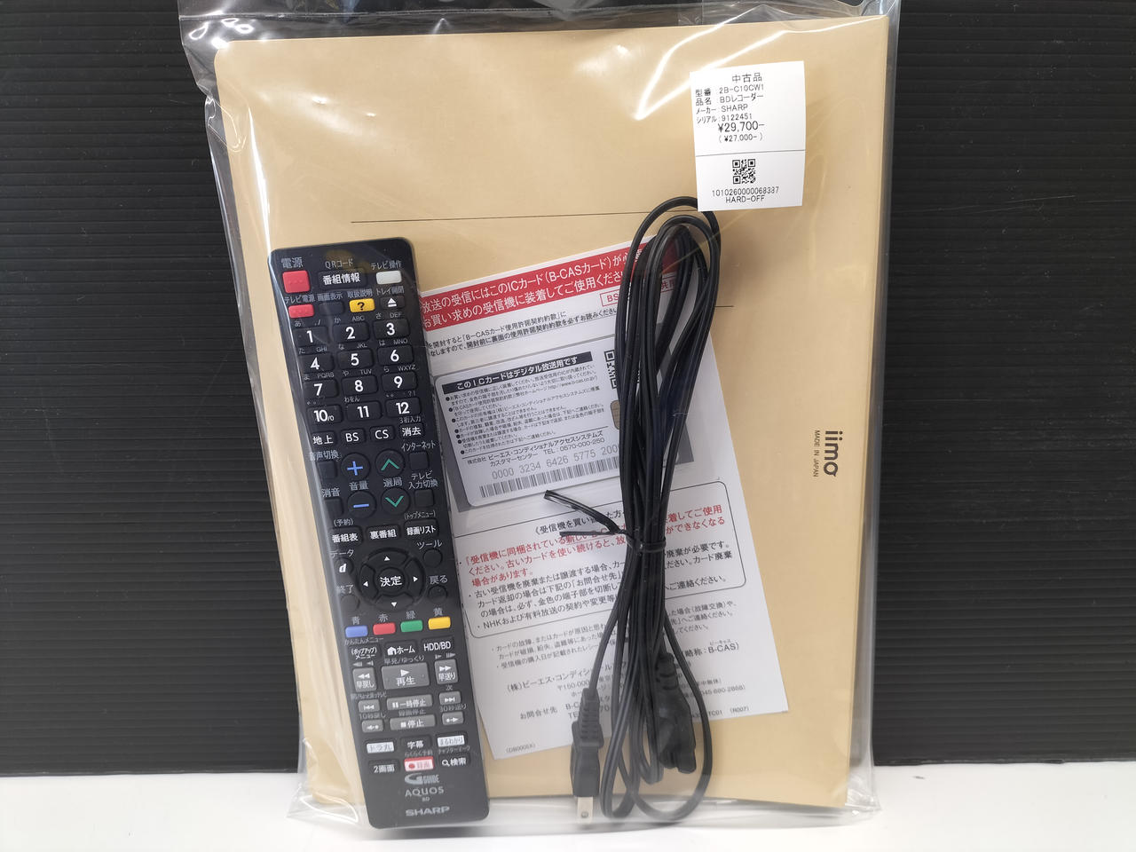 取扱説明書・電源ケーブル・リモコン・B-CASカード付属 |