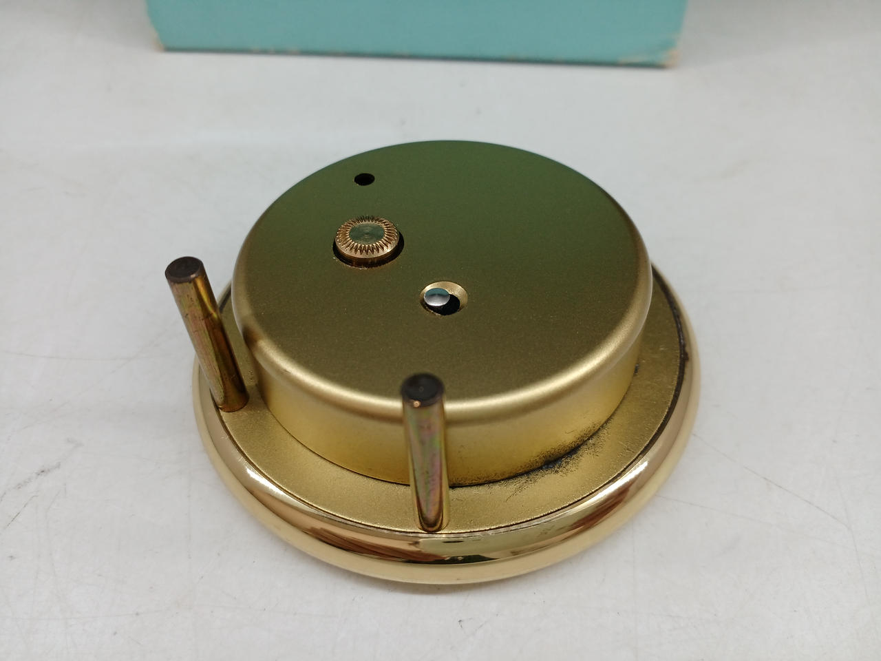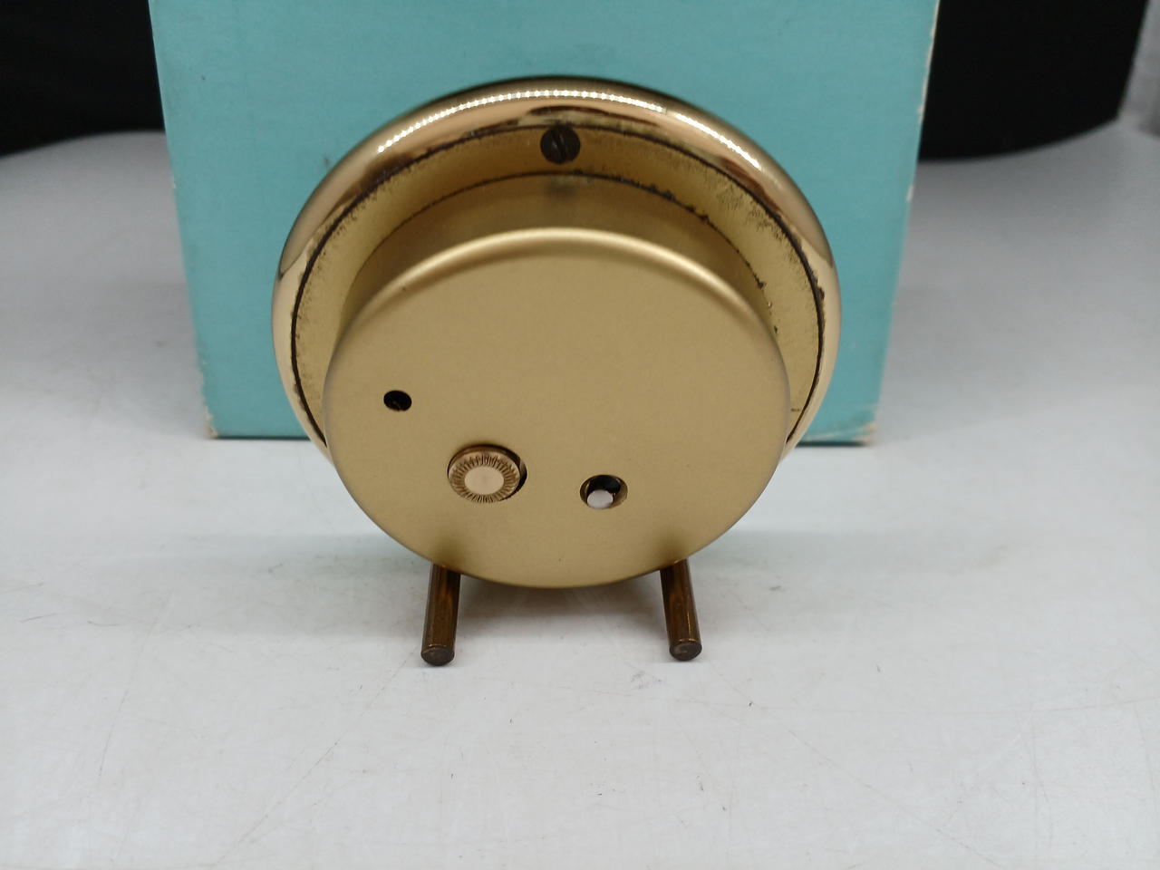 箱付属。箱にダメージあり。本体は単5電池使用。可動品ですが、内部のサビや劣化がみられます。アラーム機能も確認済み。