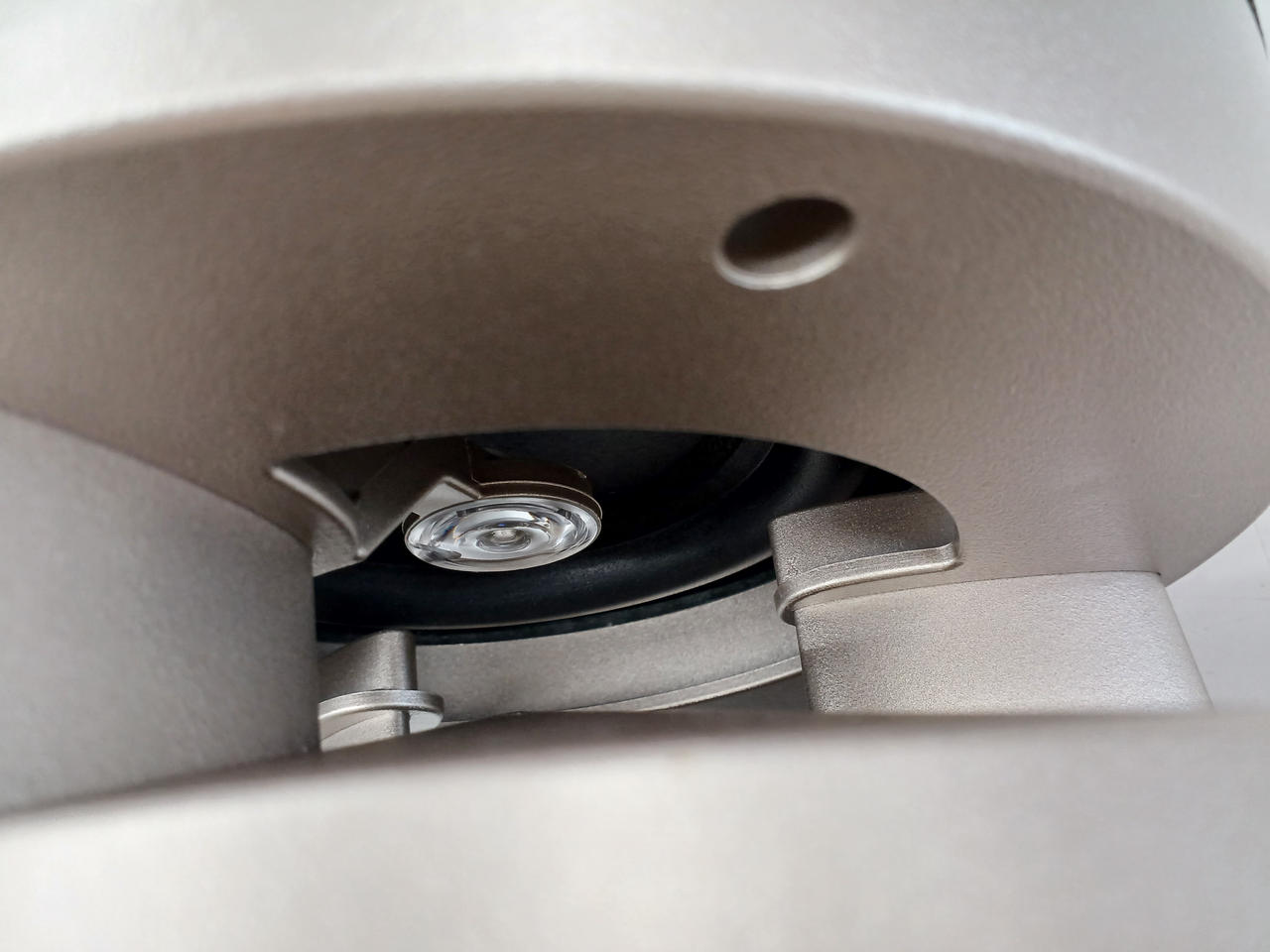 フルレンジスピーカーを4方向に4台と底面にウーハーを搭載した上質なオーディオプレーヤー |