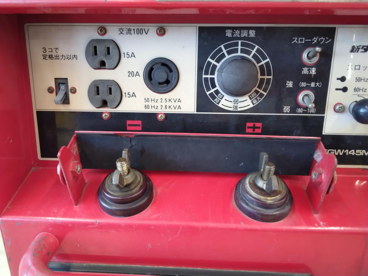 溶接機兼用発電機です、キャスターが劣化で傷んでしまって移動時にガタガタします。こちらの商品は重量があるため店頭受取のみの販売となります。