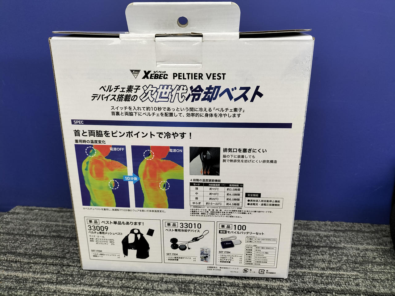 ジーベックのペルチェ素子を首と脇に配置して、効率的に身体を冷やすペルチェ冷却ベスト |