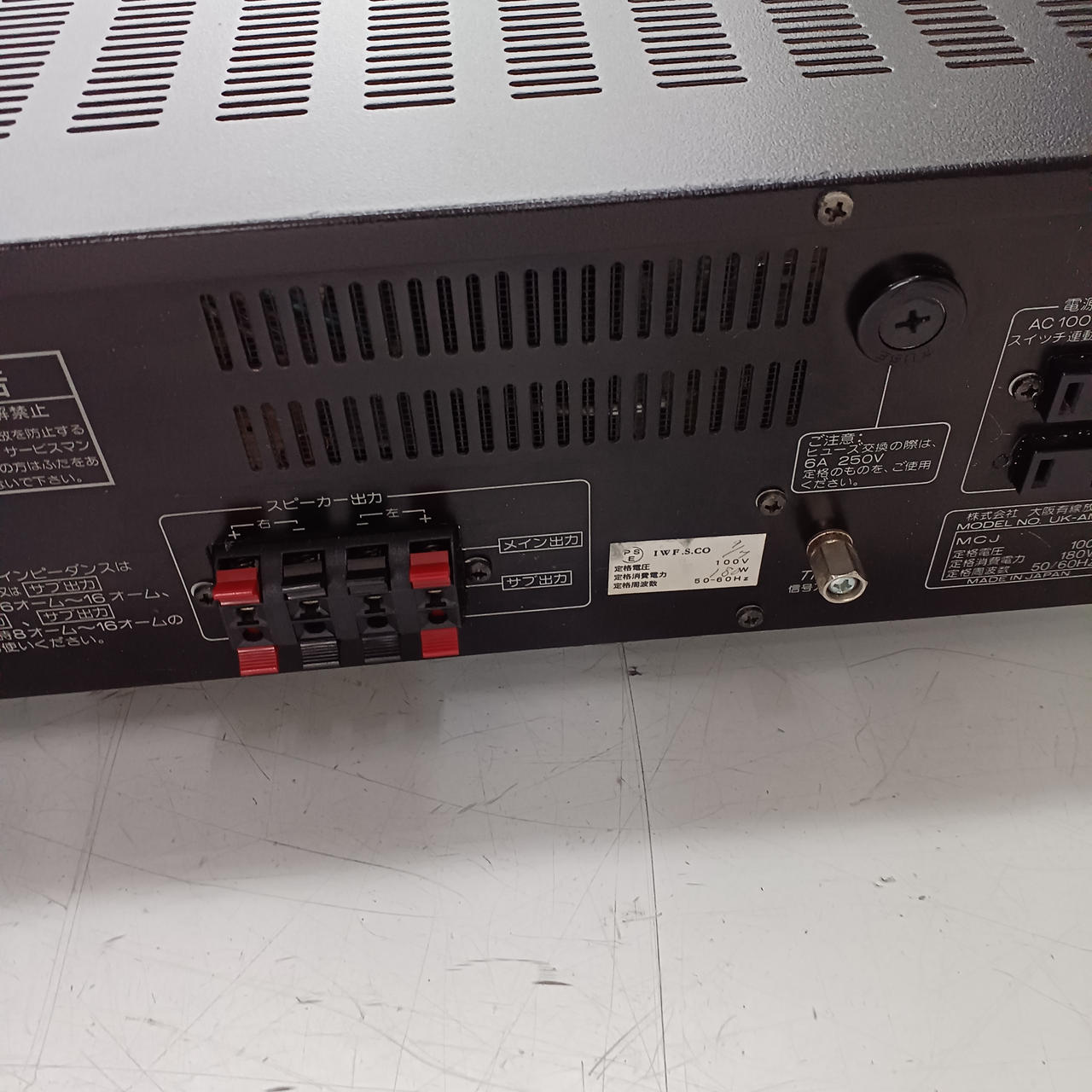 定格出力:180W(100V動作) 入力端子:RCAピンジャック/マイク端子 |