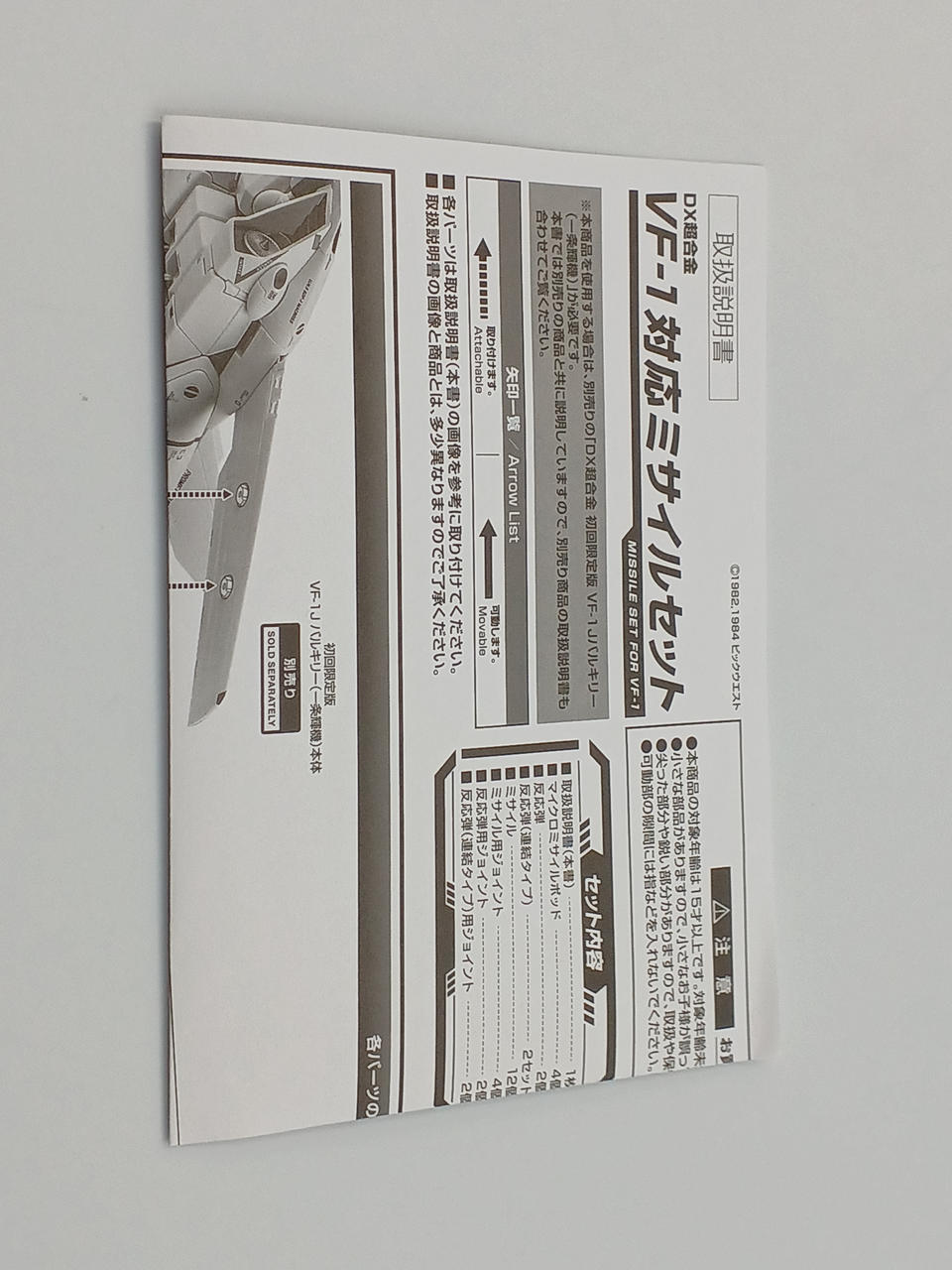 こちらの商品には、DX超合金 VF-1Jは付属致しません、予めご了承ください。 |