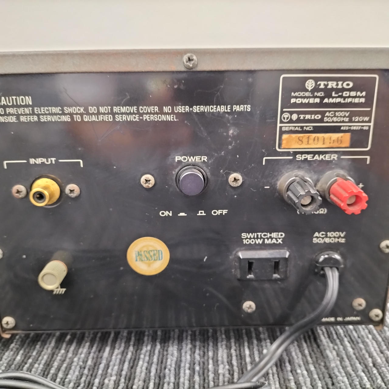 100W(10Hz~100kHz、歪率0.05%、8Ω) |