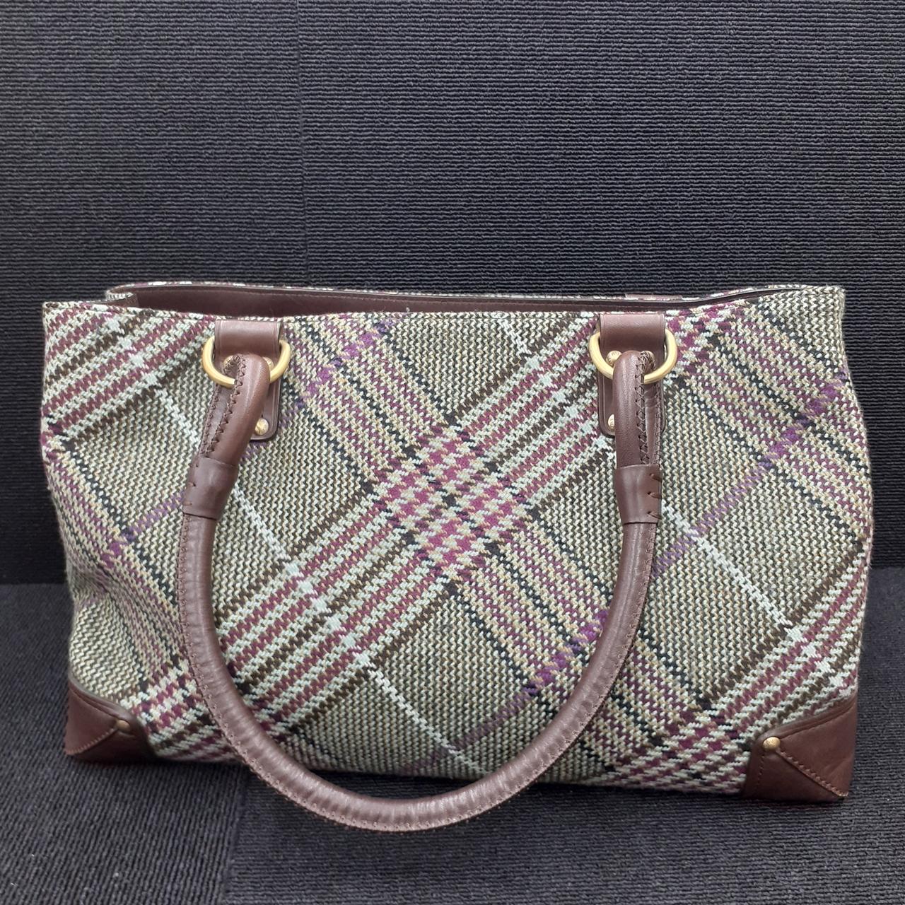 BURBERRYチェックのレザー×ウールのハンドバッグです!これからの季節にオススメ! |