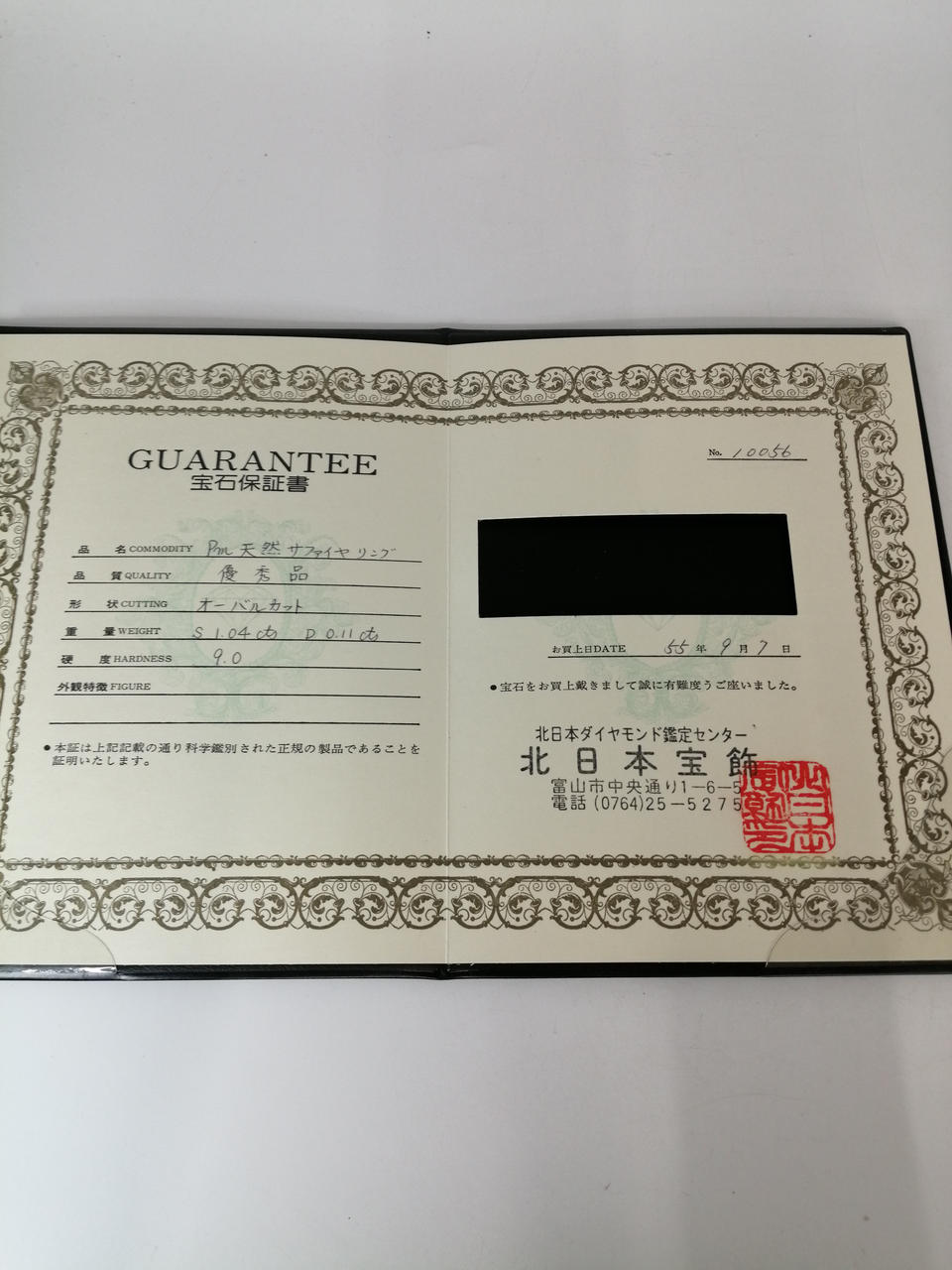宝石保証書あります。 |