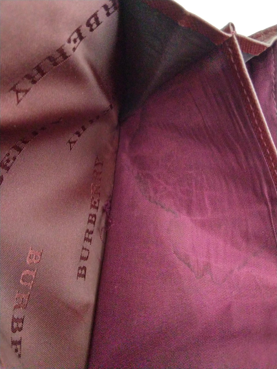 内側のBURBERRYロゴの裏側のポケットが破損有り |